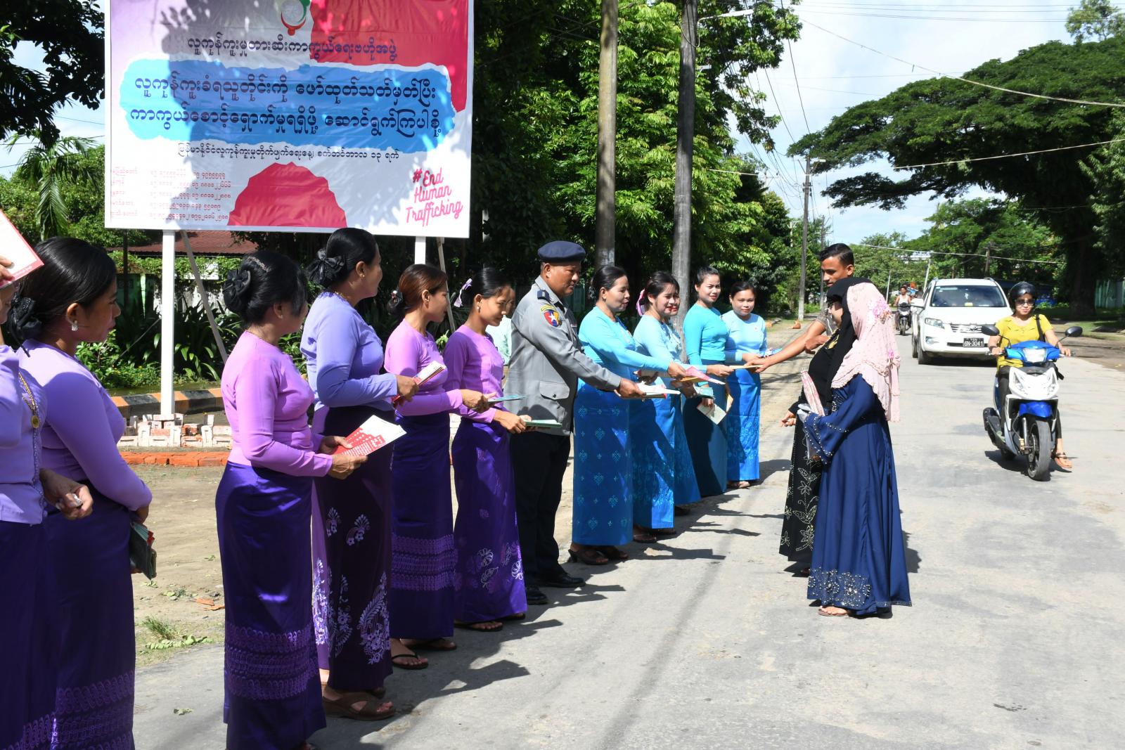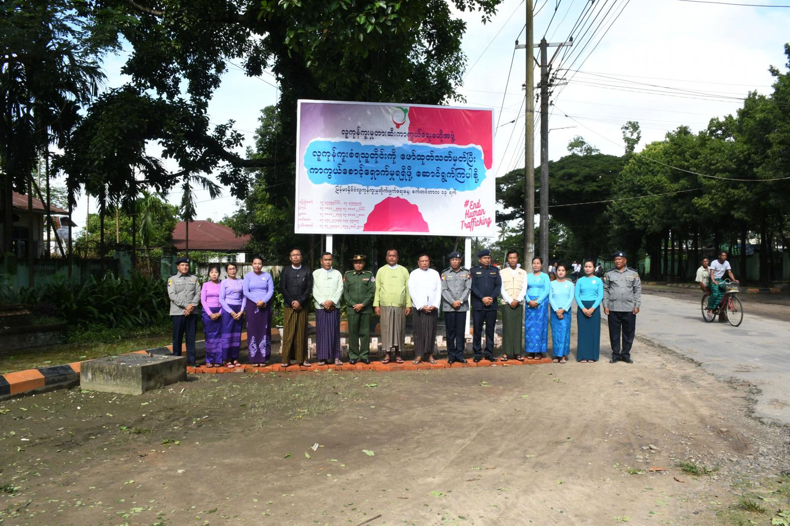အဆိုပါ လူကုန်ကူးမှုတိုက်ဖျက်ရေးနေ့အထိမ်းအမှတ်အကြို အသိပညာပေး ဗီနိုင်းစိုက်ထူပွဲသို့ ခရိုင်စီမံ အုပ်ချုပ်ရေးအဖွဲ့ဉက္ကဋ္ဌ ဦးနေဦးနှင့် အဖွဲ့ဝင်များ၊ မြို့နယ်စီမံအုပ်ချုပ်ရေးအဖွဲ့ဉက္ကဋ္ဌ ဦးကံထွန်းအောင်နှင့် အဖွဲ့ဝင်များ၊ အမှတ်(၄၆) မူးယစ်တပ်ဖွဲ့စုမှူး ရဲမှူးမြင့်သောင်း၊ အမှတ်(၁) လူကုန်ကူးမှု တားဆီး နှိင်နင်းရေး ရဲတပ်ဖွဲ့စိတ်(မောင်တော)မှ တပ်ဖွဲ့စိတ်မှူး ဒုတိယရဲမှူးစံမင်းနှင့် တပ်ဖွဲ့ဝင်များ၊ ခရိုင် အဆင့် ဌာနဆိုင်ရာများ၊ အမျိုးသမီးရေးရာအဖွဲ့ဝင်များ၊ မိခင်နှင့် ကလေးစောင့်ရှောက်ရေးအသင်း၊ ရပ်ကွက်ကျေးရွာ အုပ်ချုပ်ရေးမှူးနှင့် တာဝန်ရှိသူများ တက်ရောက်ခဲ့ကြပြီး “လူကုန်ကူးခံရသူတိုင်းကို ဖော်ထုတ်သတ်မှတ်ပြီး ကာကွယ်စောင့်ရှောက်မှုရရှိဖို့ ဆောင်ရွက်ကြပါစို့” ဆောင်ပုဒ်ပါ အသိပညာပေး ဗီနိုင်းကို စိုက်ထူခဲ့ကြသည်။ ထို့နောက် လူကုန်ကူးမှုတိုက်ဖျက်ရေးနေ့ အထိမ်းအမှတ်အကြိုအဖြစ် မိမိတို့မြို့နယ်အတွင်း လူကုန်ကူးမှုမခံရစေရန်အတွက် ဆောင်ရန်၊ ရှောင်ရန်များပါဝင်သော အသိပညာ ပေးလက်ကမ်းစာစောင်များကိုလည်း လူစည်းကားရာ နေရာများနှင့်လမ်းဆုံတို့တွင်ဖြန့်ဝေပေးခဲ့ ကြကြောင်းသိရသည်။
