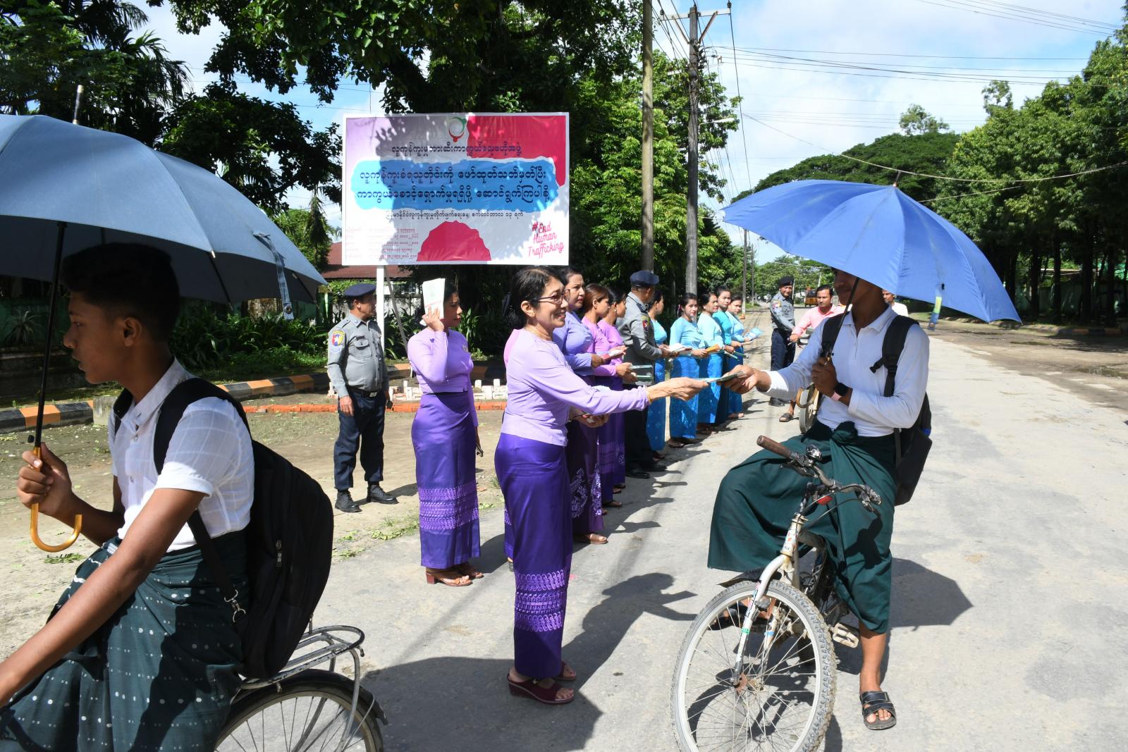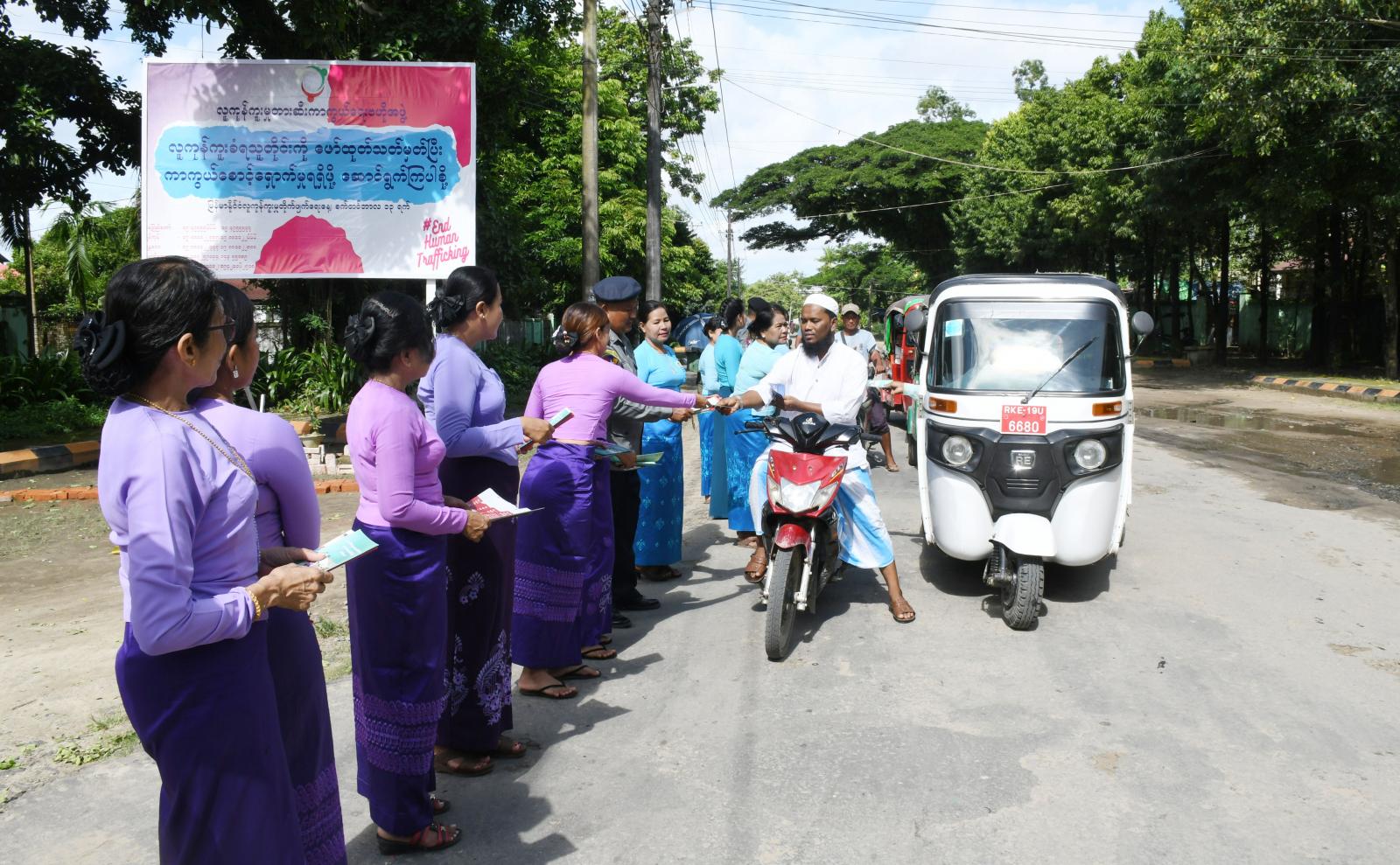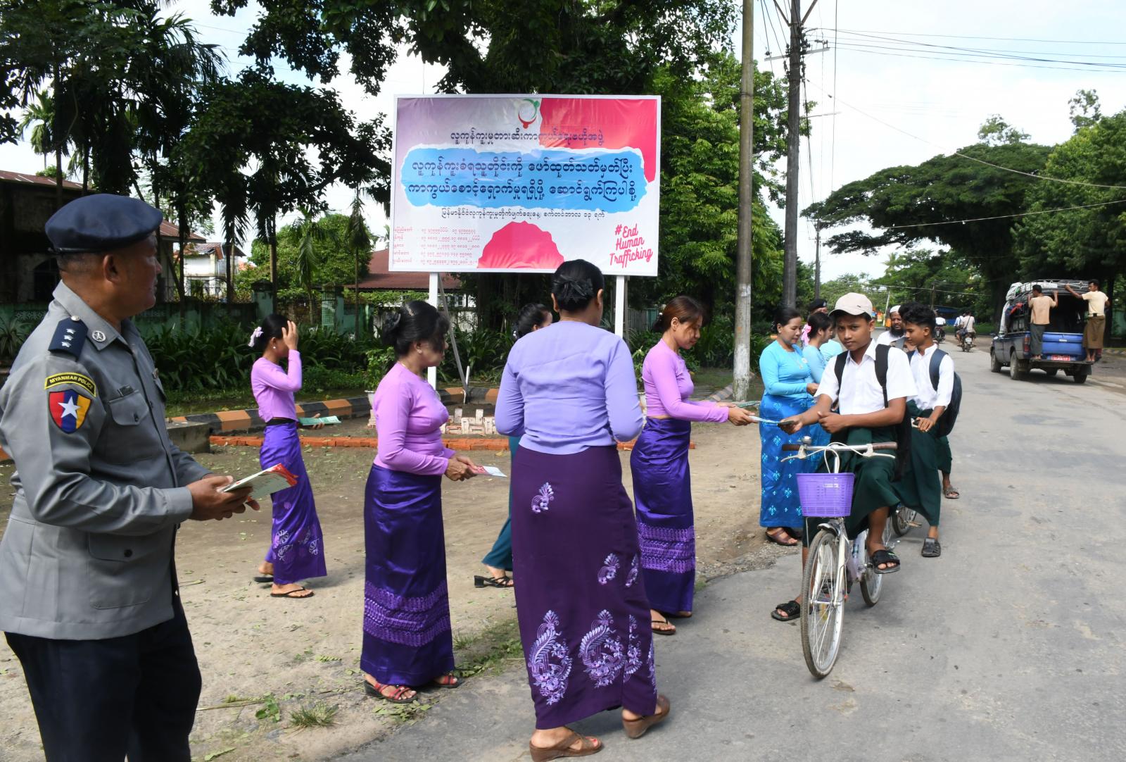 ရခိုင်ပြည်နယ်၊ မောင်တောခရိုင်၊ မောင်တောမြို့၌ လူကုန်ကူးမှုတိုက်ဖျက်ရေးနေ့အထိမ်းအမှတ်အကြို လူကုန်ကူးမှုအန္တရာယ် တားဆီးကာကွယ်ရေး အသိပညာပေးဗီနိုင်းစိုက်ထူခြင်းကို ယနေ့နံနက် ၉ နာရီအချိန် မောင်တောခရိုင်အထွေထွေအုပ်ချုပ်ရေးဦးစီးဌာနရုံးရှေ့ တြိဂံလမ်းဆုံတွင် ပြုလုပ်ခဲ့သည်။