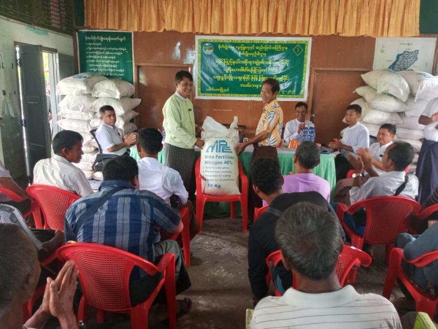 ရခိုင်ပြည်နယ် စစ်တွေခရိုင် ပေါက်တောမြို့နယ်အတွင်း မိုးစပါးအထွက်နှုန်း တိုးတက်စေရန် ပြည်တွင်းမှထုတ်လုပ်သော ယူးရီးယားဓာတ်မြေဩဇာ (MPE)များကို ရခိုင်ပြည်နယ် အစိုးရအဖွဲ့၏ အစီအစဉ်ဖြင့် ဒေသခံတောင်သူများသို့ ဈေးနှုန်းချိုသာစွာ ဖြန့်ဖြူးခြင်းကို ယမန်နေ့နံနက်ပိုင်းက မြို့နယ်စိုက်ပျိုးရေးဦးစီးဌာနရုံးရှိ အစည်းအဝေးခန်းမ၌ ကျင်းပခဲ့သည်။