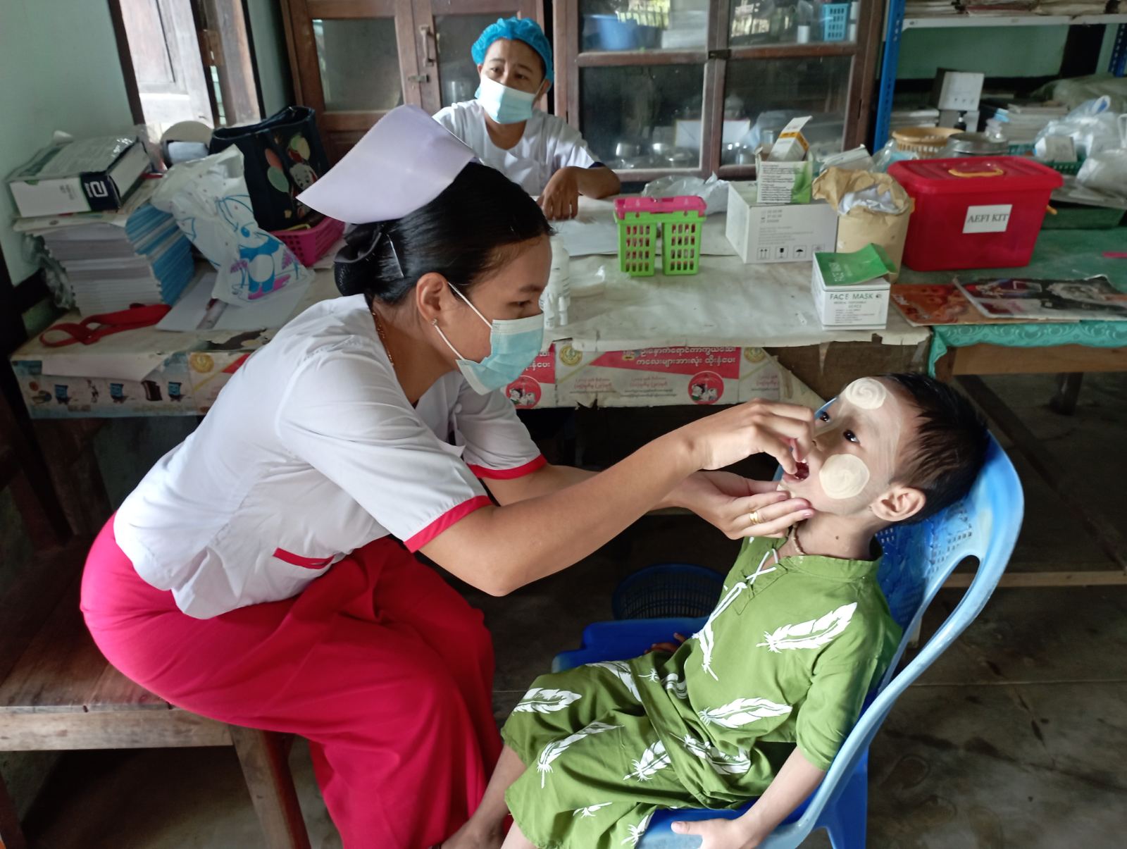 ထိုသို့ ကာကွယ်ဆေးများ တိုက်ကျွေးရာတွင်ကျန်းမာရေးဌာနမှ ဝန်ထမ်းများက မြို့ပေါ်ရပ်ကွက်များရှိ အသက်(၆)လမှ (၅)နှစ်ထိကလေးငယ်များအား ဗီတာမင်(အေ)ဆေးတိုက်ကျွေးခြင်းအစီအစဥ်တွင် အသက်(၆)လမှ (၁၁)လအထိ ကလေးများအား ဗီတာမင်အေဆေး(တစ်သိန်း) အား ကိုလည်းကောင်း၊ အသက်(၁)နှစ်မှ (၅)နှစ်အထိ ကလေးငယ်များအား ဗီတာမင်အေဆေး (နှစ်သိန်း)အား ကိုလည်းကောင်းတိုက်ကျွေးပေးခဲ့ကြောင်းနှင့် စက်တင်ဘာလ (၁၃)ရက်နေ့မှ ၁၅)ရက်နေ့အထိ မြို့နယ်မိခင်နှင့်ကလေးကျန်းမာရေးဌာနတွင် ဗီတာမင်(အေ)ဆေး တိုက်ကျွေး ပေးသွားမည် ဖြစ်ကြောင်း သိရသည်။