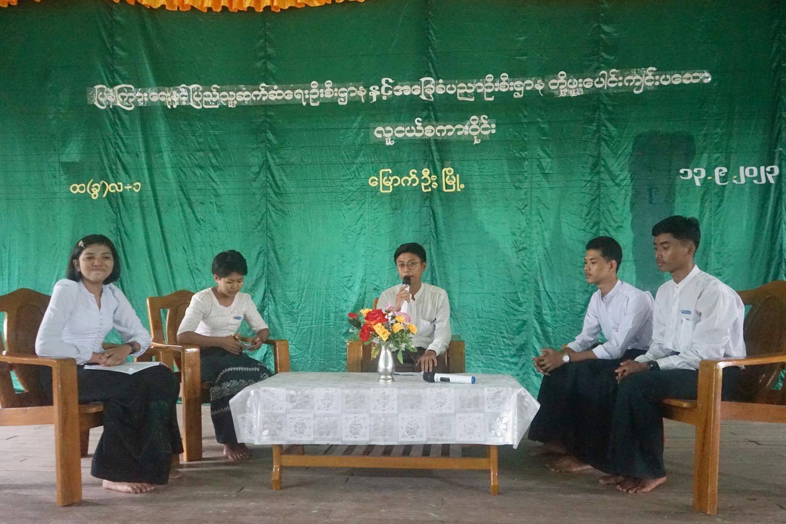 ရခိုင်ပြည်နယ်၊ မြောက်ဦးခရိုင်၊ မြောက်ဦးမြို့၌ လူငယ်များ၊ အသိပညာစွမ်းအား၊ အတတ်ပညာစွမ်းအား၊ အတွေးအခေါ်စွမ်းအားများ ပြည့်ဝစေပြီး လူအများရှေ့စကားပြောဆိုရာ၌ ရဲဝံ့စွာပြောဆိုဆွေးနွေးနိုင်သည့် အလေ့အကျင့်ကောင်းများရရှိစေရန်၊ စာဖတ်ခြင်းဖြင့် အသိပညာ ဗဟုသုတများနှင့်ပြည့်စုံပြီး ဗလငါးတန်နှင့်ပြည်စုံသောလူငယ်လူရွယ်များ ဖြစ်လာစေရေးအတွက် ပြန်ကြားရေးနှင့်ပြည်သူ့ဆက်ဆံရေးဦးစီးဌာနနှင့် အခြေခံပညာဦးစီးဌာနတို့ ပူးပေါင်းကျင်းပသော လူငယ်စကားဝိုင်းအခမ်းအနားကို ယမန်နေ့ ညနေပိုင်းအချိန်က ပြင်ဈေးရပ်ကွက် အခြေခံပညာအထက်တန်းကျောင်း(ခွဲ)လ(၁)ကျောင်း၌ ကျင်းပပြုလုပ်ခဲ့သည်။