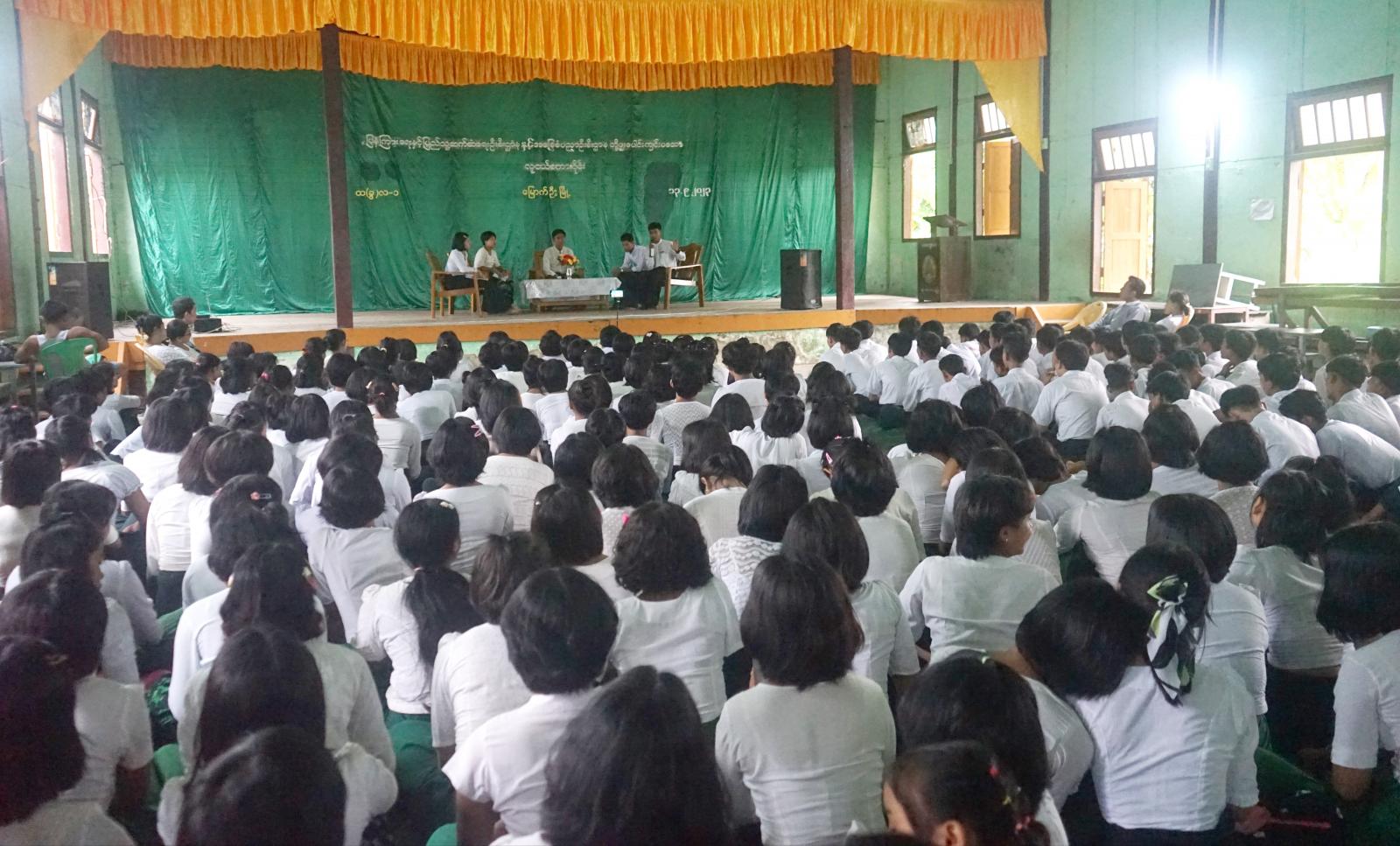 ပြီးနောက် လူငယ်စကားဝိုင်းကို ဆက်လက်ကျင်းပရာ ပြန်ကြားရေးနှင့်ပြည်သူ့ဆက်ဆံရေးဦးစီးဌာနမှ ဓါတ်ပုံကျွမ်းကျင်-၂ ဦးမြင့်စိုးက ဦးဆောင်ဆွေးနွေးသူ (Moderator) အဖြစ်ပါဝင်ဆောင်ရွက်ပြီး အ.ထ.က(ခွဲ) လ(၁) ကျောင်းမှကျောင်းသား၊ ကျောင်းသူများဖြစ်သည့် Grade- 12 ကျောင်းသား မောင်ဦးနိုင်ဝင်းမှ လူငယ်နှင့်ရှေ့အနာဂတ် ခေါင်းစဉ်ဖြင့်လည်းကောင်း၊ Grade-12 ကျောင်းသား မောင်စိုးနိုင်ထွန်းမှ Good Family ခေါင်းစဉ်ဖြင့် လည်းကောင်း၊ Grade-11 ကျောင်းသူ မထက်ထက်သူမှ အခက်အခဲနှင့်တုံ့ပြန်မှု ခေါင်းစဉ်ဖြင့်လည်းကောင်း၊ Grade-11 ကျောင်းသူ မမြတ်ပန်းငြိမ်းမှ လူငယ်နှင့်အင်တာနက် ခေါင်းစဉ်ဖြင့် အသီးသီးဆွေးနွေးကြရာ အခမ်းအနားသို့ တက်ရောက်လာကြသော ကျောင်းသား၊ကျောင်းသူများက သိရှိလိုသည်များကို မေးမြန်းကြရာ ဦးဆောင်ဆွေးနွေးသူက ပြန်လည်ရှင်းလင်းပြောကြားခဲ့ကြောင်း သိရသည်။ အဆိုပါ အခမ်းအနားတွင် ပြန်ကြားရေးနှင့်ပြည်သူ့ဆက်ဆံရေးဦးစီးဌာနမှ ခင်းကျင်းပြသထားသော စာအုပ်ပြပွဲနှင့် လူကုန်ကူးမှုအန္တရာယ် အသိပညာပေးနံရံကပ်စာစောင် မူးယစ်ဆေးဝါး အသိပညာပေး နံရံကပ်စာစောင်များအား စိတ်ပါဝင်စားစွာ လေ့လာကြည့်ရှုခဲ့ကြောင်း သိရသည်။
