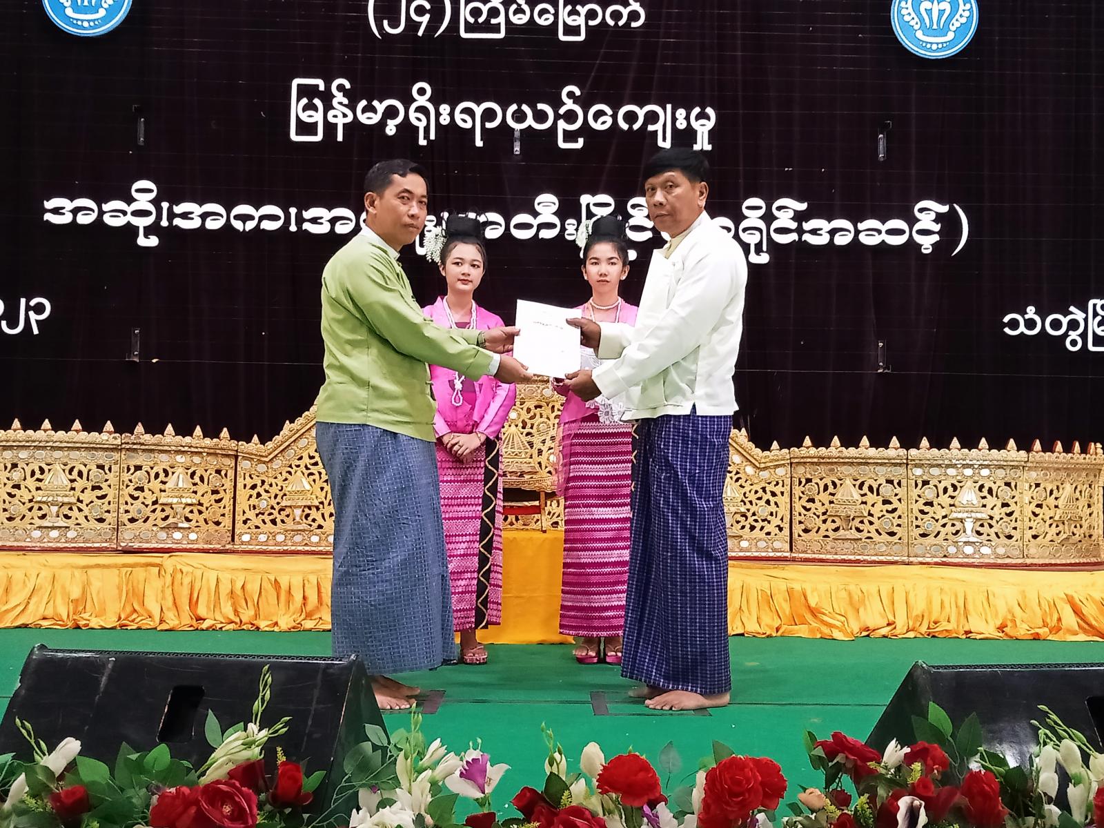 ထို့နောက် သံတွဲမြို့နယ်မှ အဆို၊ အက ပြိုင်ပွဲဝင်(၁၀)ဦး၊ ဂွမြို့နယ်မှ (၃)ဦးတို့က အဆို၊ အကများဖြင့် ဝင်ရောက်ယှဉ်ပြိုင်ခဲ့ကြရာ အနောက်ပိုင်းတိုင်းစစ်ဌာနချုပ်၊ တိုင်းဦးစီးချုပ် ဗိုလ်မှူးချုပ်ကျော်ကျော်သန်း၊ ခရိုင်စီမံအုပ်ချုပ်ရေးအဖွဲ့ဥက္ကဋ္ဌ ဦးမျိုးချစ်နှင့် တာဝန်ရှိသူများက ပြိုင်ပွဲဝင်များအား ဂုဏ်ပြုဆုများအသီးသီးချီးမြှင့်ပေးခဲ့ကြကြောင်း၊ အ.ထ.က(၁)နှင့် အ.ထ.က(ခွဲ)မြို့မမှ ကျောင်းသူလေးများ၏ “ချစ်စရာ့ကိုရွှေတမာ” တေးသီချင်းစုပေါင်းသီဆိုမှုဖြင့် အခမ်းအနားကို ရုပ်သိမ်းခဲ့ကြောင်း သိရသည်။