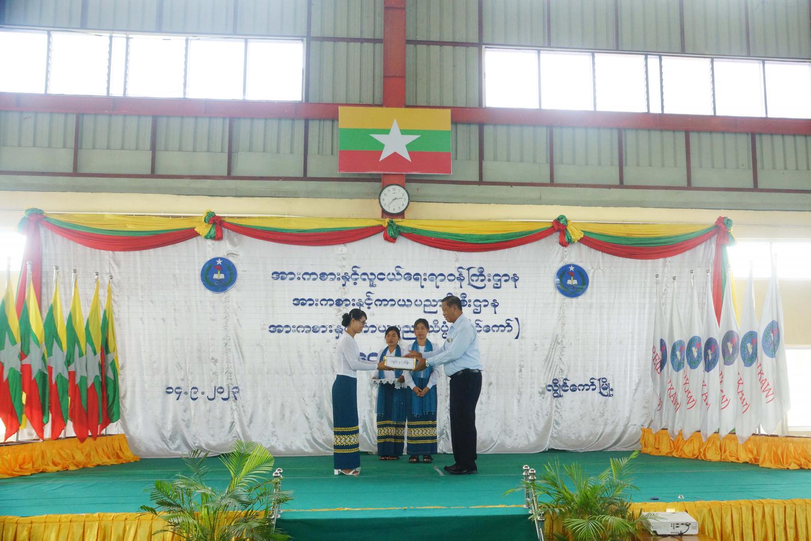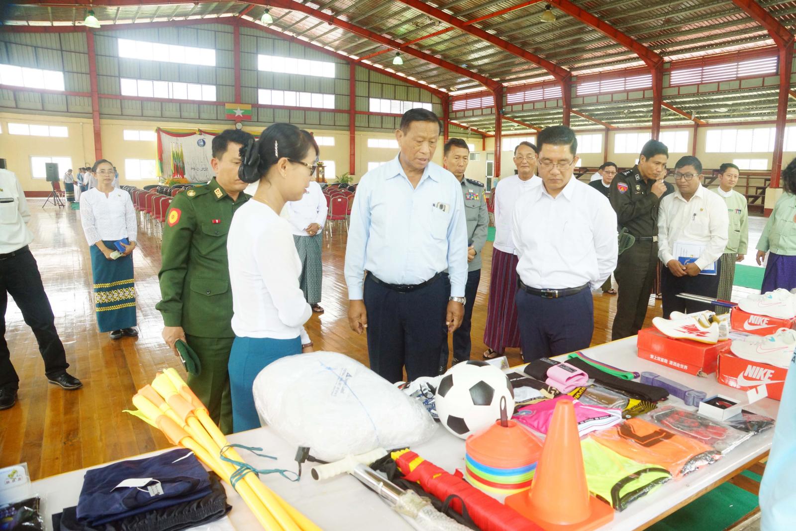 ယင်းနောက် နိုင်ငံတော်စီမံအုပ်ချုပ်ရေးကောင်စီအဖွဲ့ဝင်နှင့် ပြည်နယ်ဝန်ကြီးချုပ်တို့က အားကစားနှင့်ကာယပညာသိပ္ပံ (လွိုင်ကော်) အတွက် ထောက်ပံ့ငွေများ ပေးအပ်ခဲ့ကြပြီး ဆရာ ၊ ဆရာမများ၊ သင်တန်းသား၊ သင်တန်းသူများနှင့် ရင်းရင်းနှီးနှီး နှုတ်ဆက်စကားပြောကြားခဲ့သည်။