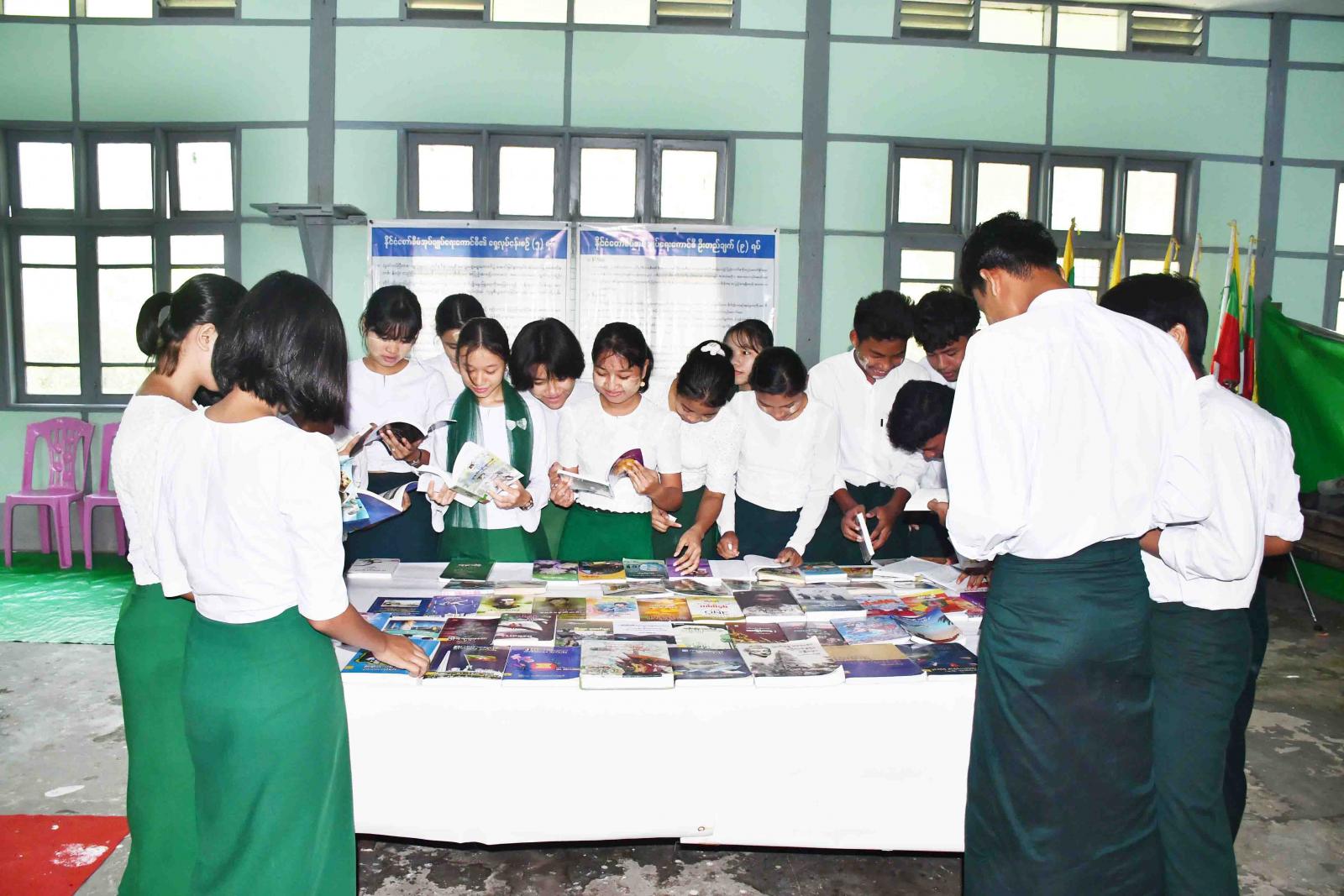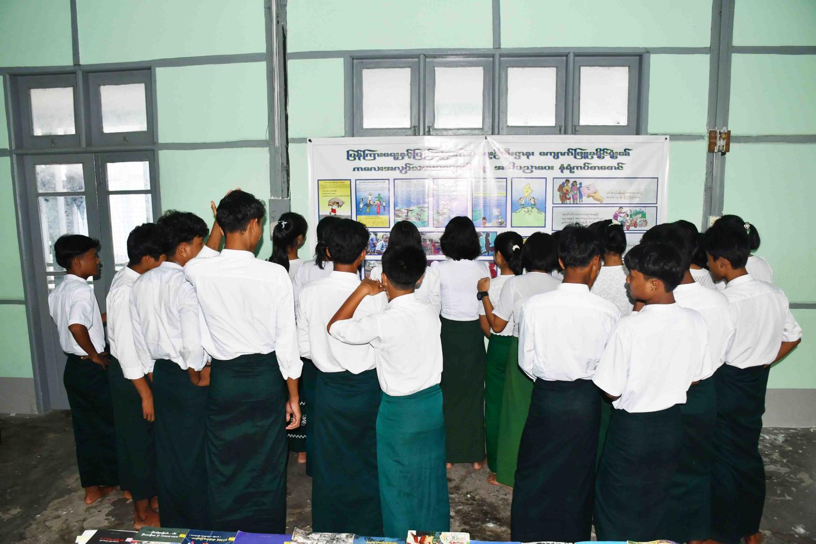 ဆက်လက်၍ ကျောင်းသား၊ ကျောင်းသူများသည် ပြန်ကြားရေးနှင့်ပြည်သူ့ဆက်ဆံရေးဦးစီးဌာနမှ ခင်းကျင်းပြသထားသည့် နိုင်ငံတော်စီမံအုပ်ချုပ်ရေးကောင်စီ၏ ရှေ့လုပ်ငန်းစဉ်(၅)ရပ်နှင့် ဦးတည်ချက်(၉)ရပ် ပါရှိသော နံရံကပ်စာစောင်များ၊ ကလေးအလုပ်သမားပပျောက်ရေး အသိပညာပေးနံရံကပ်ဓာတ်ပုံများနှင့် စာအုပ်စာစောင်များတို့အား စိတ်ပါဝင်စားစွာဖြင့် လေ့လာကြည့်ရှုခဲ့ကြသည်။ ထို့နောက် ပြန်ကြားရေးနှင့်ပြည်သူ့ဆက်ဆံရေးဦးစီးဌာနမှ ဝန်ထမ်းများမှ ကျောင်းသား၊ ကျောင်းသူများအား ပတ်ဝန်းကျင်ထိန်းသိမ်းရေးအသိပညာပေးလက်ကမ်းစာစောင်များအား ဖြန့်ဝေပေးခဲ့ကြောင်း သိရသည်။