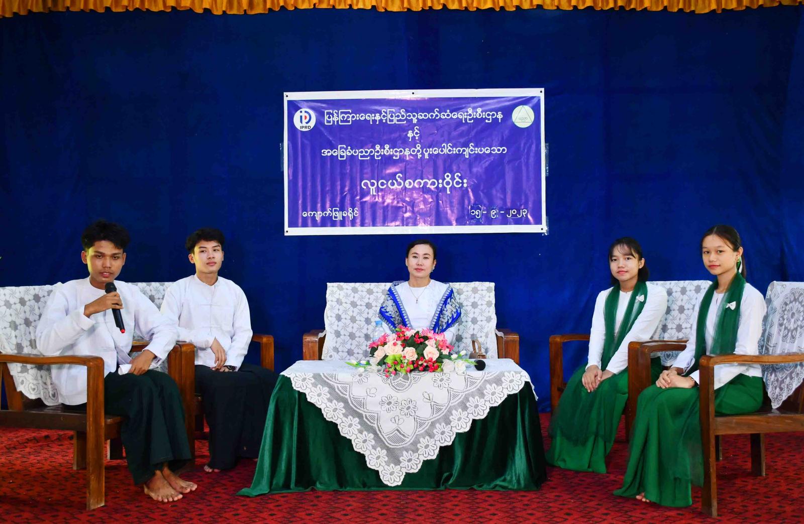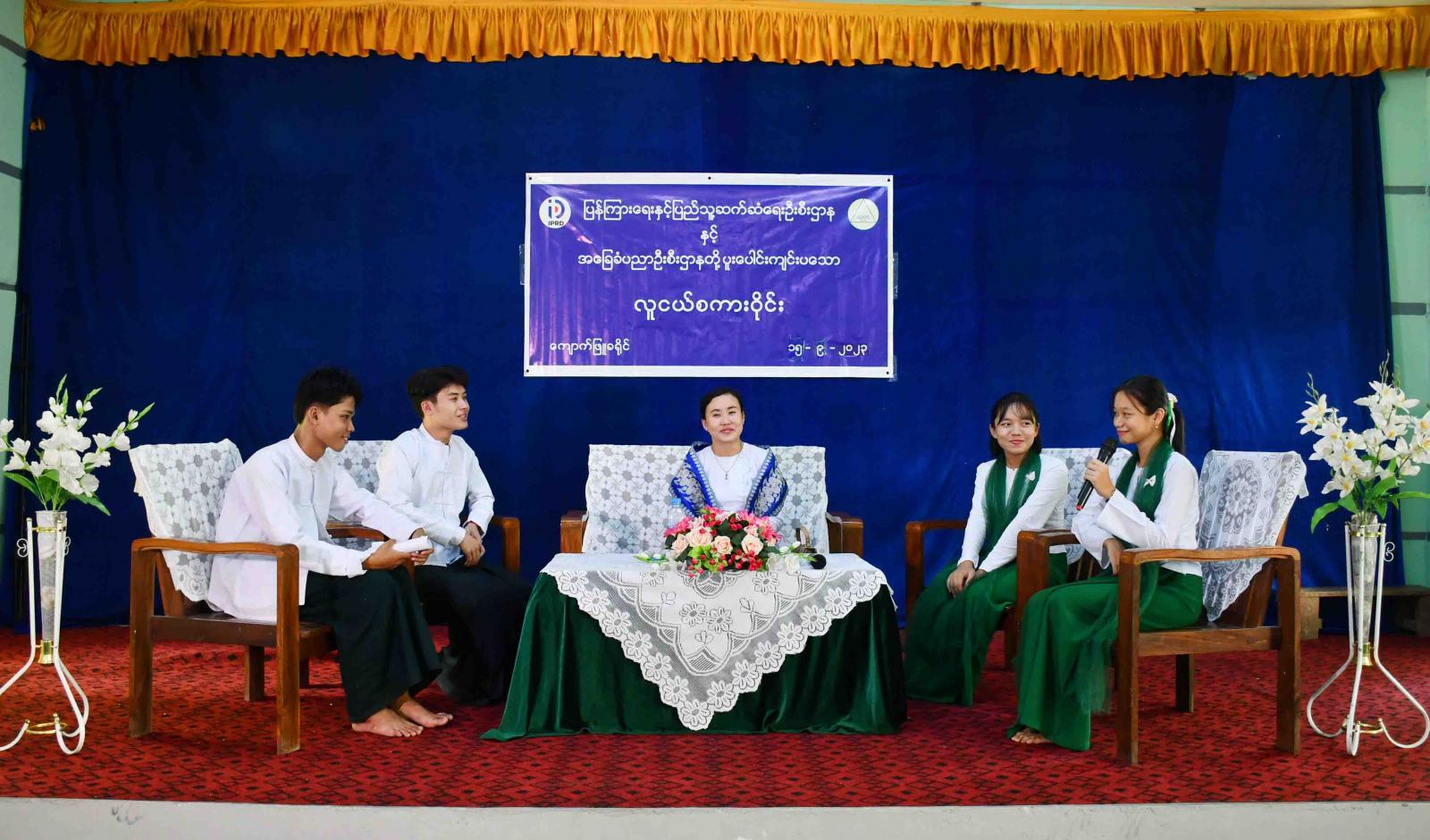 ယင်းနောက် လူငယ်စကားဝိုင်းကို ဆက်လက်ကျင်းပရာ ပြန်ကြားရေးနှင့်ပြည်သူ့ဆက်ဆံရေးဦးစီးဌာနမှ ခရိုင်ဦးစီးမှူးမှ ဦးဆောင်ဆွေးနွေးသူ(Moderator)အဖြစ် ပါဝင်ဆောင်ရွက်ပြီး အမှတ်(၂) အခြေခံပညာအထက်တန်းကျောင်းမှ Grade-12 ကျောင်းသား မောင်ဖြိုးမင်းနိုင်နှင့် မောင်ထက်မြင့် စိုးတို့က “လူငယ်နှင့်စာရိတ္တ” ၊ “လူငယ်နှင့်အနာဂတ်” ခေါင်းစဉ်များဖြင့်လည်းကောင်း၊ Grade-12 ကျောင်းသူ မနှင်းရတီက “လူငယ်နှင့်ယဉ်ကျေးမှု” ခေါင်းစဉ်ဖြင့်လည်းကောင်း၊ Grade-11 ကျောင်းသူ မဌေးမွန်မြင့်က “လူငယ်နှင့် ခေါင်းဆောင်မှု” ခေါင်းစဉ်ဖြင့်လည်းကောင်း အသီးသီး ဆွေးနွေးခဲ့ကြပြီး တက်ရောက်လာသော ကျောင်းသား၊ ကျောင်းသူများ၏ မေးမြန်းချက်များကို ဆွေးနွေးသူများမှ ပြန်လည်ဖြေကြားခဲ့ကြသည်။ ၎င်းနောက် ပြန်ကြားရေးနှင့်ပြည်သူ့ဆက်ဆံရေးဦးစီးဌာနမှ ခရိုင်ဦးစီးမှူးက လူငယ်စကားဝိုင်းတွင် ပါဝင်ဆွေးနွေးခဲ့ကြသည့် ကျောင်းသား၊ကျောင်းသူများအား အမှတ်တရလက်ဆောင်ပစ္စည်းများ ပေးအပ်ချီးမြှင့်ပြီး မှတ်တမ်းတင်ဓာတ်ပုံ များ ရိုက်ကူးခဲ့ကြသည်။