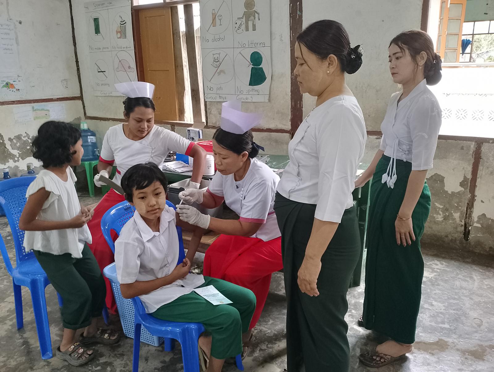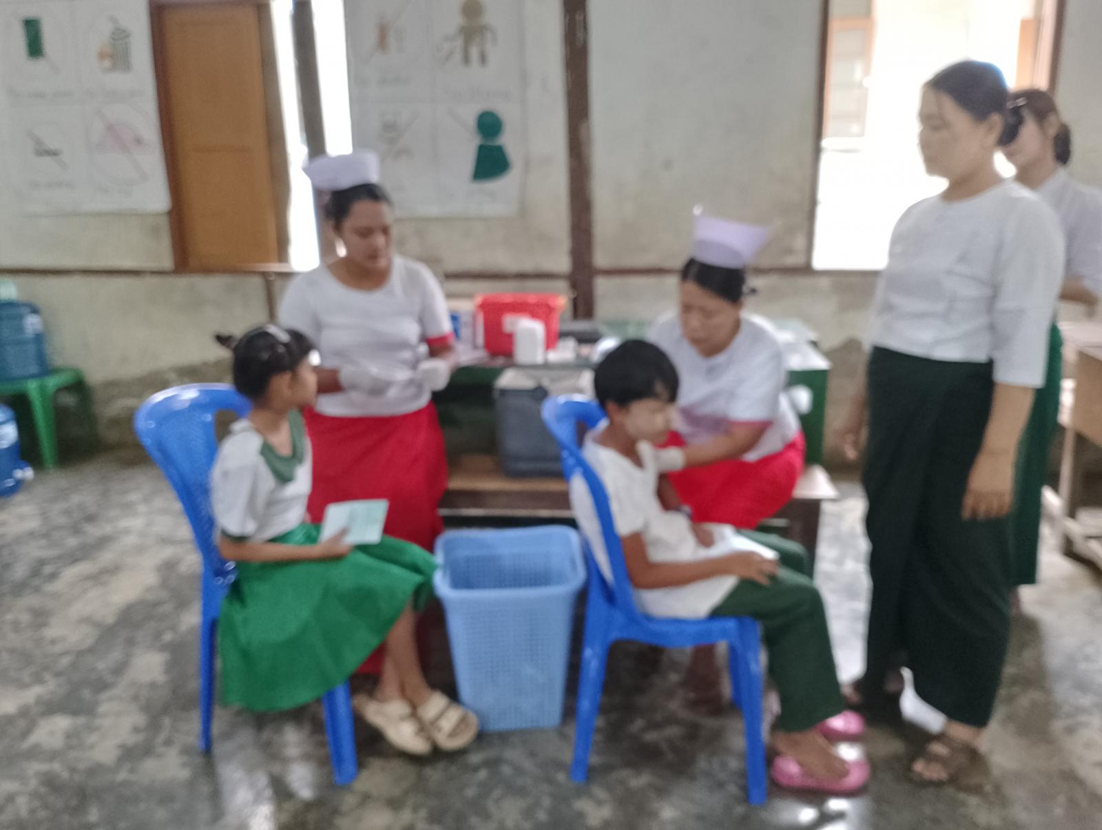 ထိုသို့ထိုးနှံပေးရာတွင် မြို့နယ်ပြည်သူ့ကျန်းမာရေးနှင့်ကုသရေးဦးစီးဌာနမှူး ဒေါက်တာ အောင်စစ်ထွန်း ဦးဆောင်သော ကျန်းမာရေးသူနာပြုဆရာမများက ကာကွယ်ဆေးထိုးနှံခြင်း မပြုမီ စာရင်းရေး သွင်းခြင်း၊ ကျန်းမာရေးစစ်ဆေးခြင်း၊ ကာကွယ်ဆေးနှင့်ဓာတ်တည့်မတည့် စစ်ဆေးခြင်းတို့ကို ဆောင်ရွက်ပေးပြီး၊ ကာကွယ်ဆေးထိုးနှံပြီးသူများကို နာရီဝက်အနားယူ စောင့်ကြည့်ပြီးမှ ပြန်လည်ထွက်ခွာခွင့်ပြုသည်။