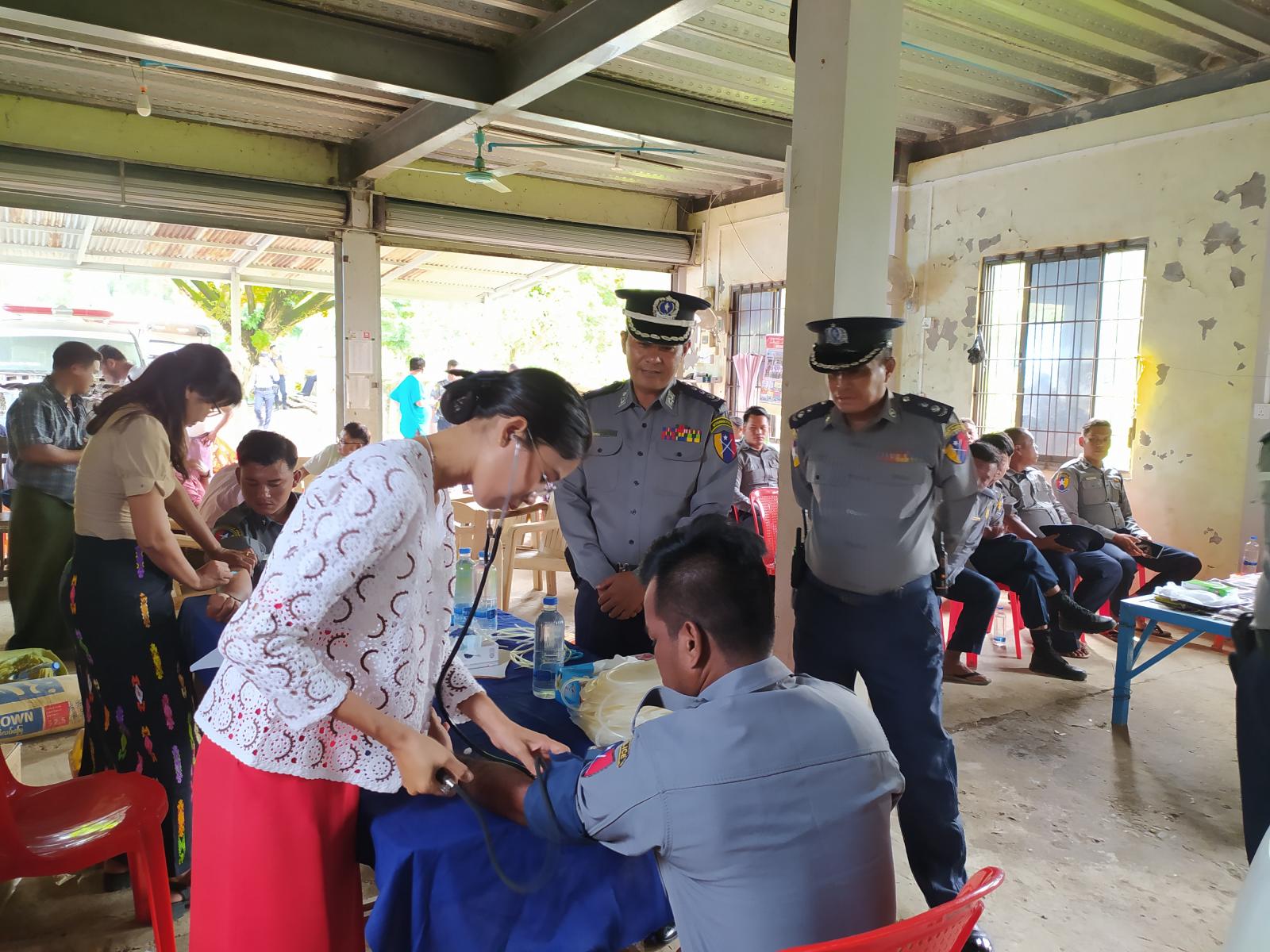 ရှေးဦးစွာ သွေးလှူဒါန်းကြမည့် ရဲတပ်ဖွဲ့ဝင်များအား မြောက်ဦးခရိုင် ပြည်သူ့ဆေးရုံမှ ကျန်းမာရေးဝန်ထမ်းများက ကိုယ်အလေးချိန်တိုင်းတာခြင်း၊ သွေးပေါင်ချိန်တိုင်းတာခြင်း၊ သွေးအမျိုးအစားခွဲခြားခြင်းနှင့် သွေးလှူဒါန်းရန်လိုအပ်သည့် ကျန်းမာရေးစစ်ဆေးခြင်းများကို ဆောင်ရွက်ကြသည်။ ဆက်လက်၍ ရဲတပ်ဖွဲ့ဝင်များက စုပေါင်းသွေးလှူဒါန်းကြရာ အမှတ်(၄) လုံခြုံရေးရဲကွပ်ကဲမှုအဖွဲ့၊ အမှတ်(၁၁) လုံခြုံရေးရဲကွပ်ကဲမှု အဖွဲ့ခွဲမှူး ရဲမှူကြီးမျိုးဝဏ္ဏ၊ အမှတ် (၃၁) လုံခြုံရေးရဲတပ်ဖွဲ့ခွဲ၊ တပ်ဖွဲ့ခွဲမှူး ဒုရဲမှူးကြီးဇော်ဝင်းထွန်းနှင့် တာဝန်ရှိသူများက သွေးလှူဒါန်းကြသည့် တပ်ဖွဲ့ဝင်များ၊ မိသားစုဝင်များအား လှည့်လည်နှုတ်ဆက်အားပေးစကားများ ပြောကြားကြကာ အာဟာရဖြည့်စာများ ထောက်ပံ့ပေးအပ်ခဲ့ကြသည်။