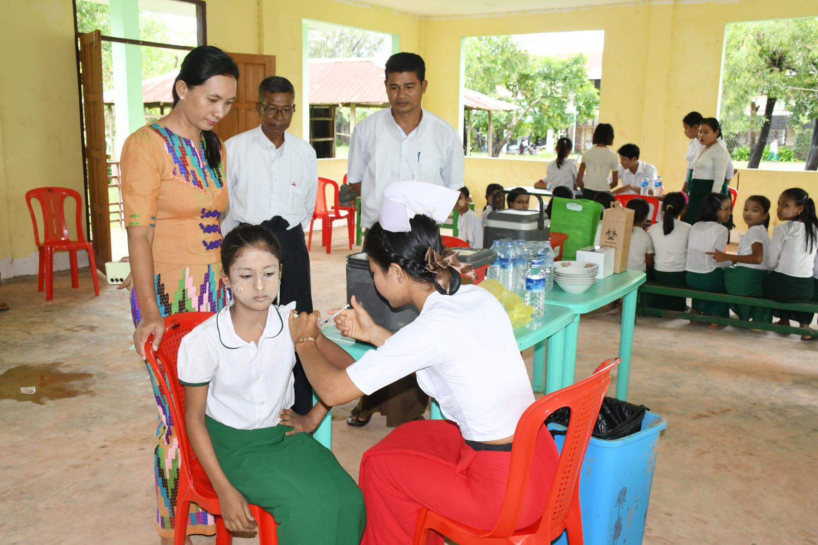 ရခိုင်ပြည်နယ်၊ မောင်တောခရိုင်၊ မောင်တောမြို့၌ အသက်(၉)နှစ်ပြည့်ပြီး (၁၂)နှစ် မကျော်သည့် မိန်းကလေးများအား သားအိမ်ခေါင်းကင်ဆာ ရောဂါကာကွယ်ဆေး (HPV) ကျောင်းအခြေပြုစတင်ထိုးနှံခြင်းကို ယမန်နေ့နံနက် ၁၀ နာရီအချိန် သတ်မှတ်ကျောင်းများတွင် ထိုးနှံပေးလျက်ရှိရာ မြို့နယ်ပြည်သူ့ကျန်းမာရေးဦးစီးဌာနမှူး ဒေါက်တာ နုကေသီစံ၊ မြို့နယ်ပညာရေးမှူး (တာဝန်ခံ) ဦးဇော်လင်းဦး၊ ကျောင်းအုပ်ဆရာကြီး၊ ဆရာမကြီးများနှင့် တာဝန်ရှိသူများက စနစ်တကျထိုးနှံနိုင်ရေး ကြီးကြပ်ဆောင်ရွက်လျက်ရှိသည်။