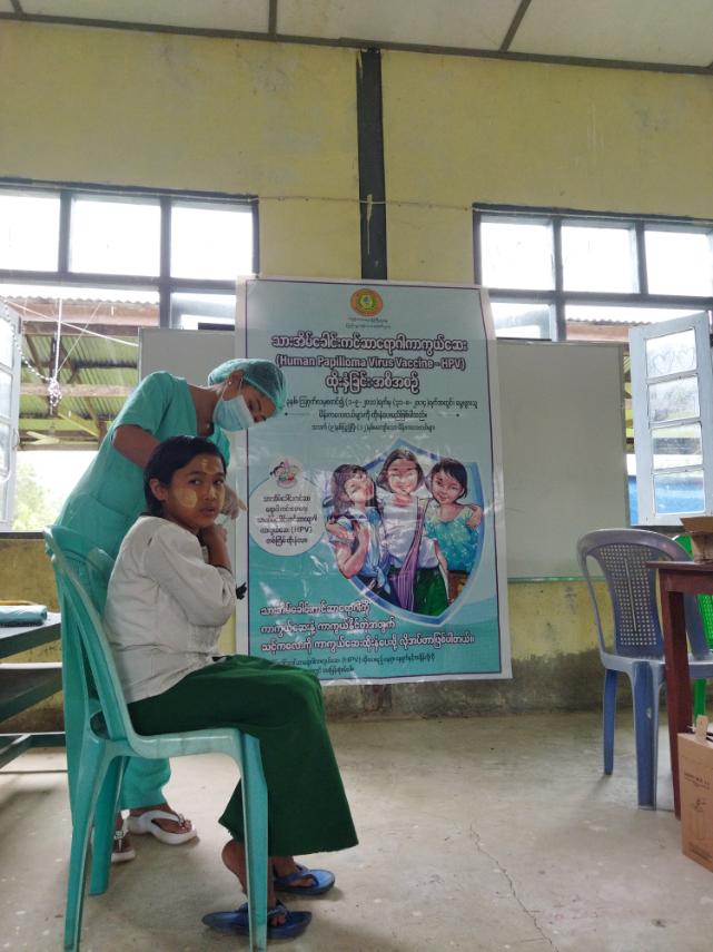 ရခိုင်ပြည်နယ်၊ သံတွဲခရိုင်၊ ကျိန္တလီမြို့၊ အမှတ်(၁)ရပ်ကွက်ရှိ အ.မ.က (စံပြ)ကျောင်းတွင် အသက်(၉)နှစ်မှ (၁၂)အထိကျောင်းသူများအား သားအိမ်ခေါင်းကင်ဆာရောဂါကာကွယ်ဆေး (Human Papilloma Virus Vaccine - HPV) ကို ယမန်နေ့နံနက် (၉)နာရီအချိန်မှစတင်၍ ကျန်းမာရေးဝန်ထမ်းများက ထိုးနှံပေးလျက်ရှိသည်။