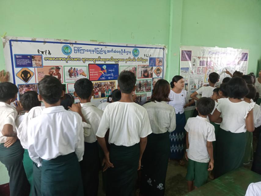 ထို့ပြင် ခန်းမအတွင်း ပြန်ကြားရေးနှင့်ပြည်သူ့ဆက်ဆံရေးဦးစီးဌာနက ပြသထားသည့် ကလေးအလုပ်သမားများ ပပျောက်ရေး အသိပညာပေး နံရံကပ်စာစောင်နှင့် လူကုန်ကူးမှု အသိပညာပေး နံရံကပ်စာစောင်နှင့် မူးယစ်ဆေးဝါး အသိပညာပေး နံရံကပ်စာစောင်များကို စိတ်ဝင်တစား ကြည့်ရှုခဲ့ကြကြောင်း သိရသည်။