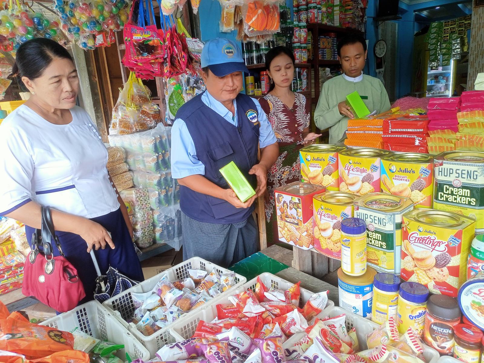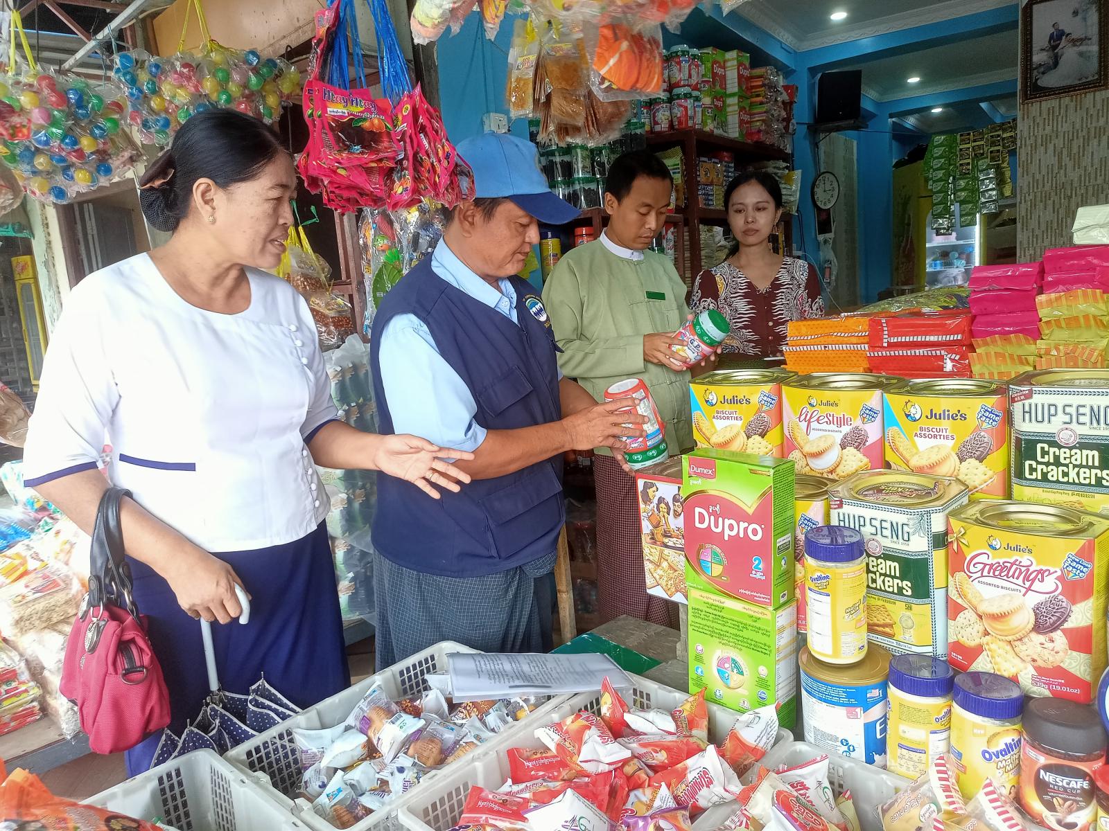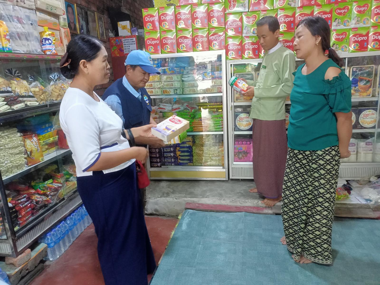 စီးပွားရေးနှင့်ကူးသန်းရောင်းဝယ်ရေးဝန်ကြီးဌာန၊ မြို့နယ်စားသုံးသူရေးရာဦးစီးဌာနမှ ဦးဆောင်လျက် မြို့နယ်အထွေထွေအုပ်ချုပ်ရေးဦးစီးဌာန၊ ကျန်းမာရေးနှင့်ကုသရေးဦးစီးဌာန၊ မြို့နယ်စည်ပင်သာယာရေးအဖွဲ့တို့မှ တာဝန်ရှိသူတို့က မြို့မဈေးနှင့် ရပ်ကွက်များအတွင်း ကုန်စုံ ဆိုင်များရှိ ကလေးအာဟာရ ဖြည့်စွက်စာအမျိုးမျိုးတို့တွင် စားသုံးသူရေးရာဦးစီးဌာန၏ စားသုံးသူကာကွယ်ရေးဥပဒေ (၂၀၁၉)၊ အခန်း (၁၈)၊ ပုဒ်မ (၄၁)၊ ကုန်အညွှန်း အမှတ်အသား ဖော်ပြချက်နှင့် ကိုက်ညီမှု ရှိ/မရှိ၊ ညွှန်ကြားချက်အမိန့်အမှတ် (၂/၂၀၁၉)ဖြင့် ထုတ်ပြန်ထားသော ကုန်စည်များတွင် မြန်မာဘာသာဖြင့်ဖြစ်စေ၊ မြန်မာဘာသာနှင့် အခြားဘာသာ တစ်ခု (သို့မဟုတ်) တစ်ခုထက်ပို၍ဖြစ်စေ ဖော်ပြရာ၌ စီးပွားရေးလုပ်ငန်းရှင်များ လိုက်နာဆောင်ရွက်ရန် ညွှန်ကြားချက်နှင့် ကိုက်ညီမှု ရှိ/မရှိနှင့် ကျန်းမာရေးဝန်ကြီးဌာနမှ ထုတ်ပြန်ထားသည့် နို့စို့ကလေးနှင့် ကလေးငယ်များအတွက် ဖော်စပ်ထုတ်လုပ်ထားသော အစားအသောက်များ ဈေးကွက်တင်ခြင်းဆိုင်ရာ အမိန့်ဖော်ပြထားခြင်းနှင့် ကိုက်ညီမှု ရှိ/မရှိတို့ကို ဈေးကွက်စောင့်ကြည့်စစ်ဆေးရေး ပူးပေါင်းအဖွဲ့မှ ကွင်းဆင်းစစ်ဆေးကြကြောင်း သိရသည်။