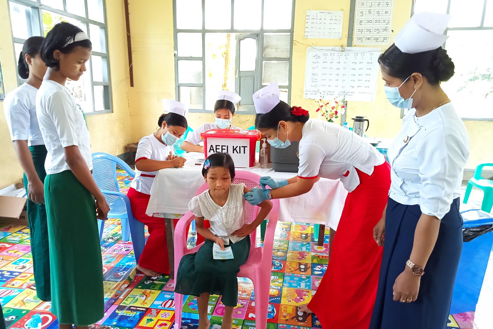 အဆိုပါကာကွယ်ဆေးထိုးနှံရာတွင် ခရိုင်ဆရာဝန်ကြီးဒေါက်တာရဲဝင်းထွန်း၏ ဦးဆောင်လမ်းညွှန်မှုဖြင့် ကျန်းမာရေးဆရာမများက သားအိမ်ခေါင်းကင်ဆာရောဂါကာကွယ်ဆေး (HPV)ကို စနစ်တကျ ထိုးနှံပေးလျက်ရှိပြီး ကျောင်းအခြေပြု အဖြစ်စက်တင်ဘာလ ၁၈ ရက်နေ့မှ ၂၉ ရက်နေ့အထိ ထိုးနှံပေးသွားမည်ဖြစ်ပြီး ပြည်သူအခြေပြုထိုးနှံခြင်းကို အောက်တိုဘာ ၁၆ ရက်မှ ၂၇ ရက်နေ့ အထိ ထိုးနှံပေးသွားမည်ဖြစ်ကြောင်းသိရသည်။