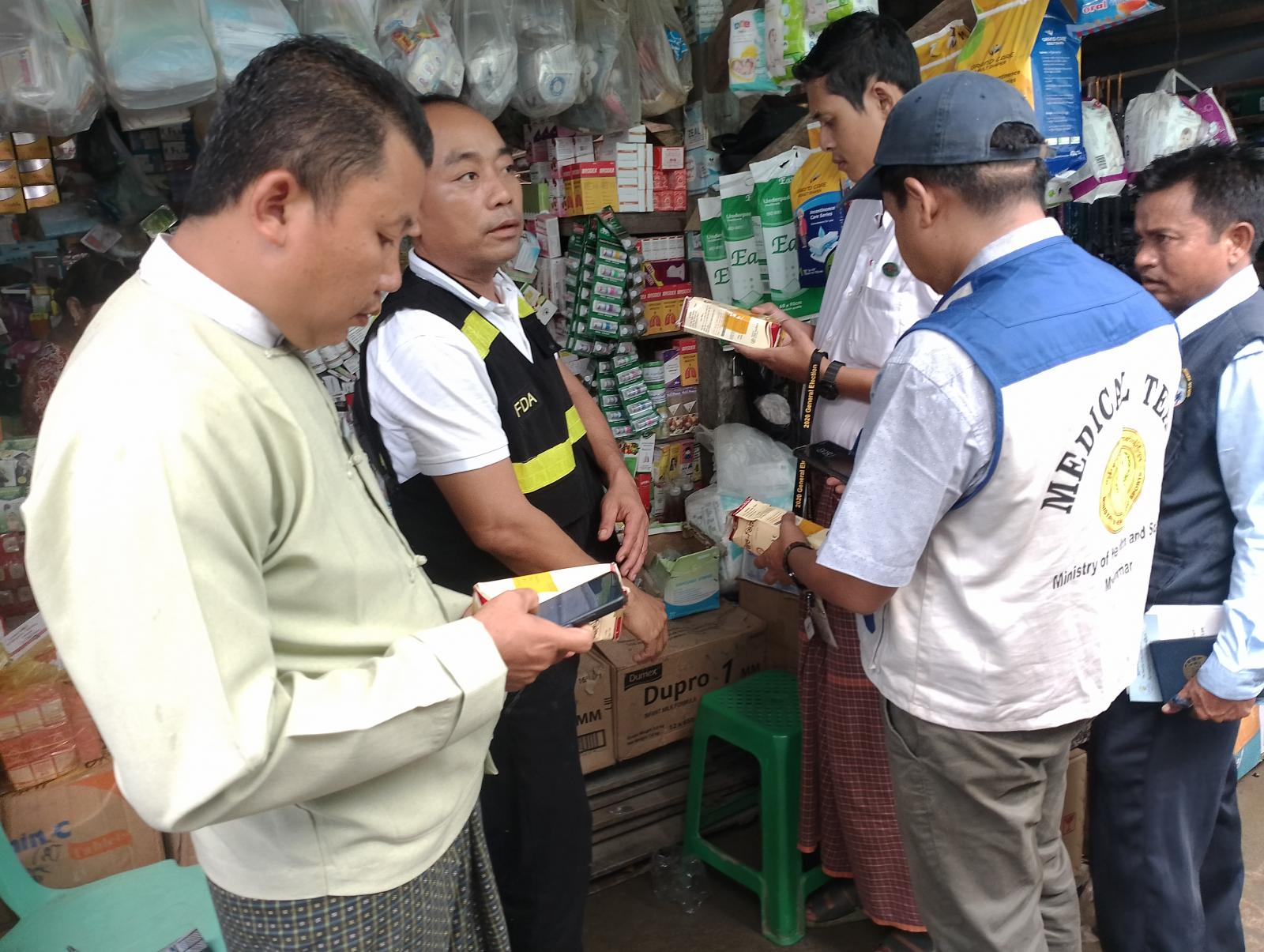 ရခိုင်ပြည်နယ်၊ စစ်တွေခရိုင်၊ ပုဏ္ဏားကျွန်းမြို့ ဈေးကြီးအတွင်း၌ ရောင်းချလျက်ရှိသော ဆေးနှင့်ဆေးပစ္စည်း အရောင်းဆိုင်များတွင် မှတ်ပုံမတင်ထားသော ဆေးဝါးများနှင့် သက်တမ်းကုန်ဆုံးသည့် ဆေးဝါးပစ္စည်းများအား ဖြန့်ဖြူးရောင်းချခြင်းရှိ/မရှိ ယမန်နေ့၊ ညနေ (၃)နာရီက (FDA)အစားအသောက်နှင့် ဆေးဝါးကွပ်ကဲရေးဦးစီးဌာန၊ ရခိုင်ပြည်နယ်ရုံးနှင့် တာဝန်ရှိသူတို့ ပူးပေါင်း၍ ကွင်းဆင်းစစ်ဆေးခဲ့ကြသည်။