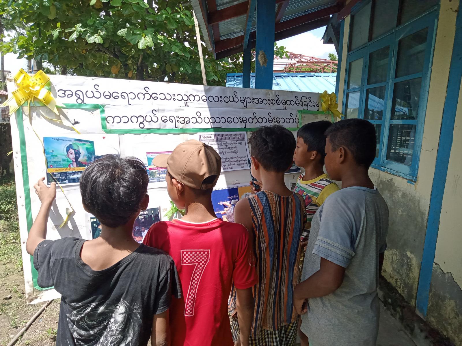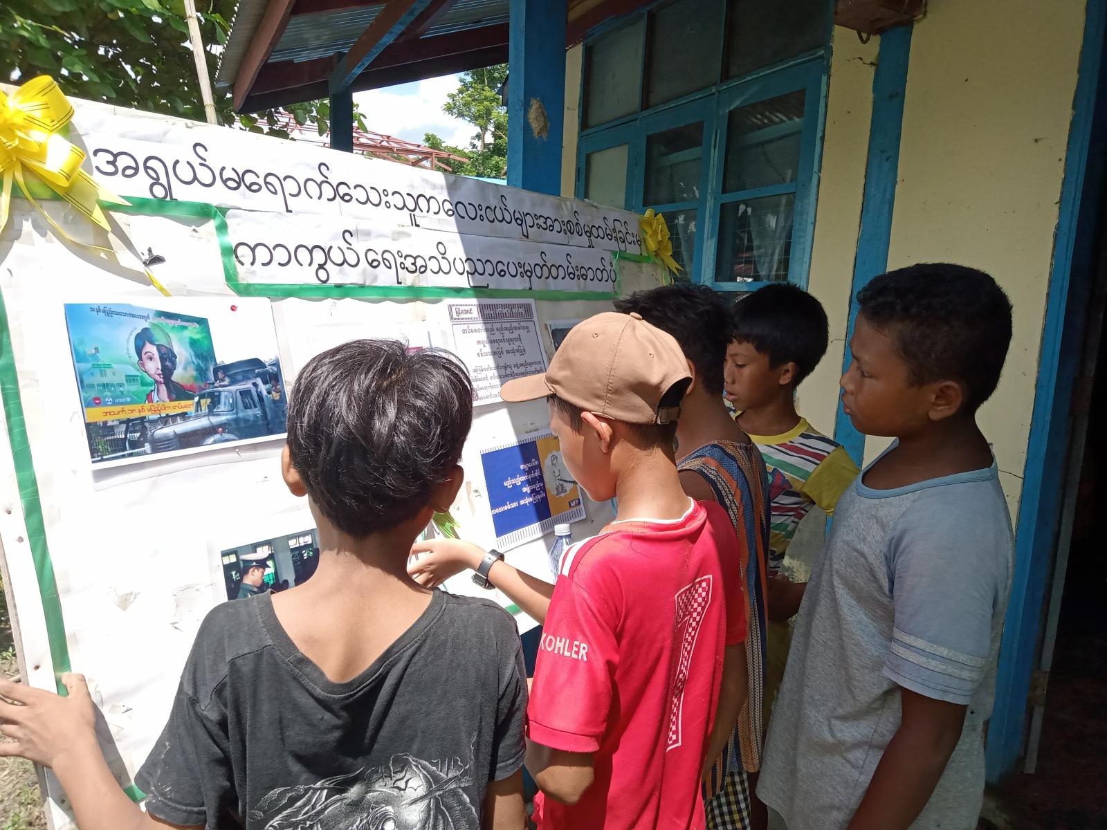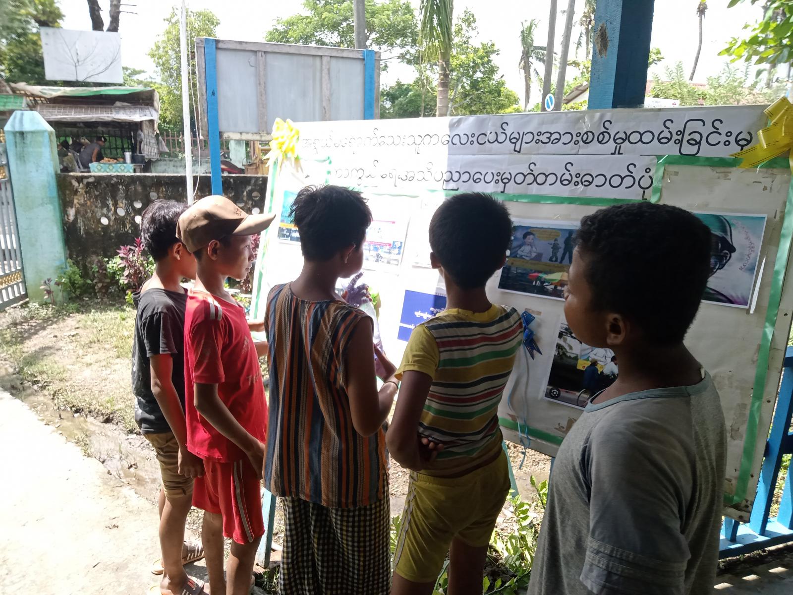 ရခိုင်ပြည်နယ်၊ စစ်တွေခရိုင်၊ ပေါက်တောမြို့နယ် ပြန်ကြားရေးနှင့် ပြည်သူဆက်ဆံရေးဦးစီးဌာနတွင် အရွယ်မရောက်သေးသူကလေးသူငယ်များအား စစ်မှုထမ်းခြင်းမှ ကာကွယ်တားဆီးထိန်းသိမ်းရေးနှင့် ပတ်သက်၍ အသိပညာပေးနံရံကပ်စာစောင်၊ ဓာတ်ပုံများကို ယနေ့နံနက်ပိုင်းက ပြသထားရှိရာ ပြည်သူများနှင့်လူငယ်များက စိတ်ပါဝင်စားစွာ ကြည့်ရှုလေ့လာကြသည်။