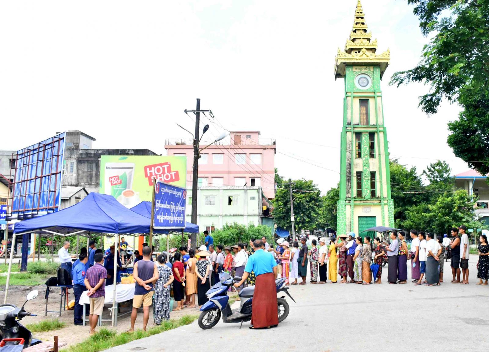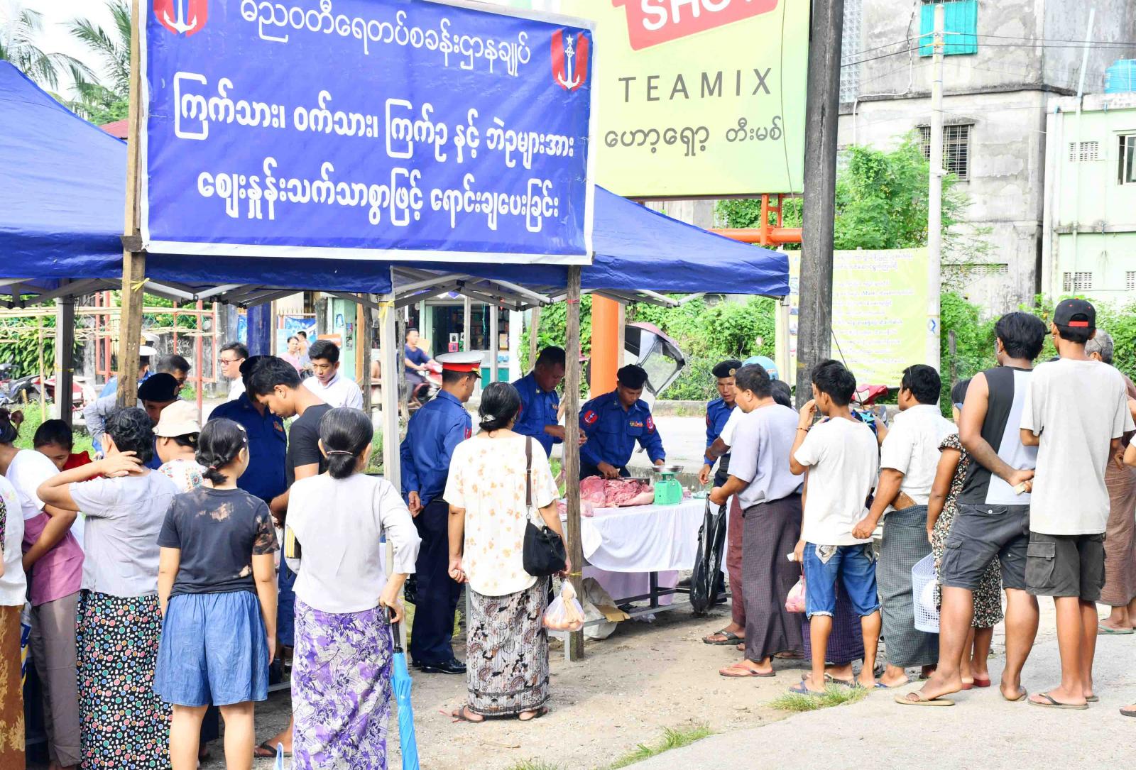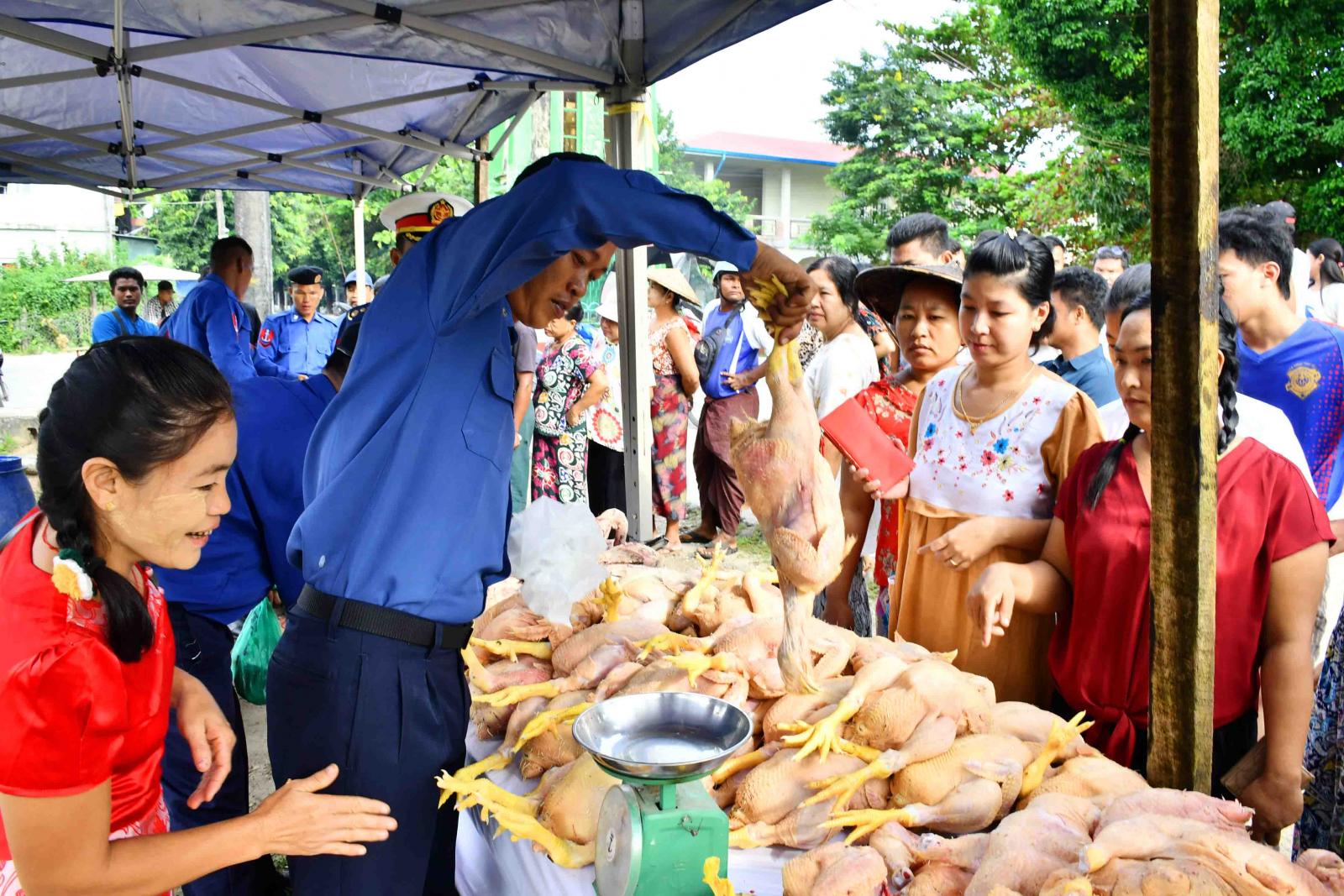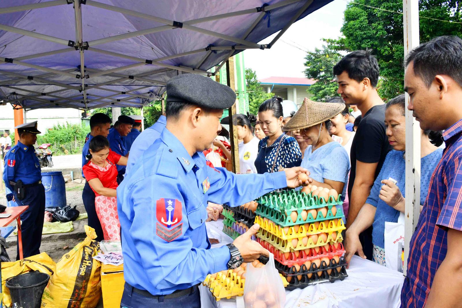 ရခိုင်ပြည်နယ်၊ ကျောက်ဖြူမြို့တွင် ဓညဝတီရေတပ်စခန်းဌာနချုပ်မှ ဒေသခံပြည်သူများနှင့် ဌာနဆိုင်ရာ ဝန်ထမ်းများအား စားသောက်ရေးများအဆင်ပြေစေရန်နှင့် ၎င်းတို့လိုအပ်သည့် စားသောက်ကုန်ပစ္စည်းများကို ဈေးနှုန်းသက်သာစွာဖြင့် ဝယ်ယူစားသောက်နိုင်စေရန်အတွက် ယနေ့ နံနက်ပိုင်းက အလယ်ပိုင်းရပ်ကွက်ရှိ နာရီစင်ကွင်းနေရာ၌ ဝက်သား၊ ကြက်သား၊ ဘဲသားနှင့် ကြက်ဥများကို ပြင်ပပေါက်ဈေးထက်ဈေးနှုန်း သက်သာစွာဖြင့် ရောင်းချပေးလျက်ရှိသည်။