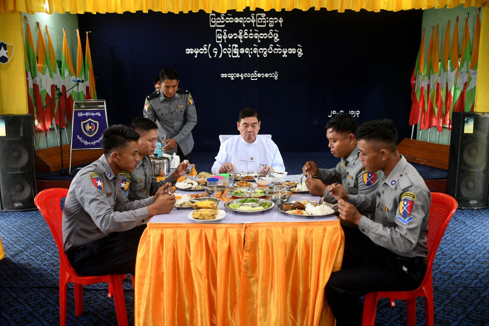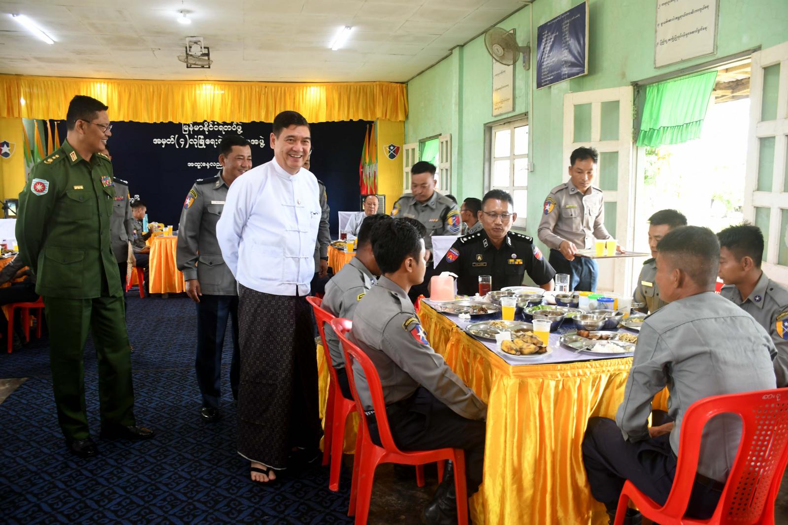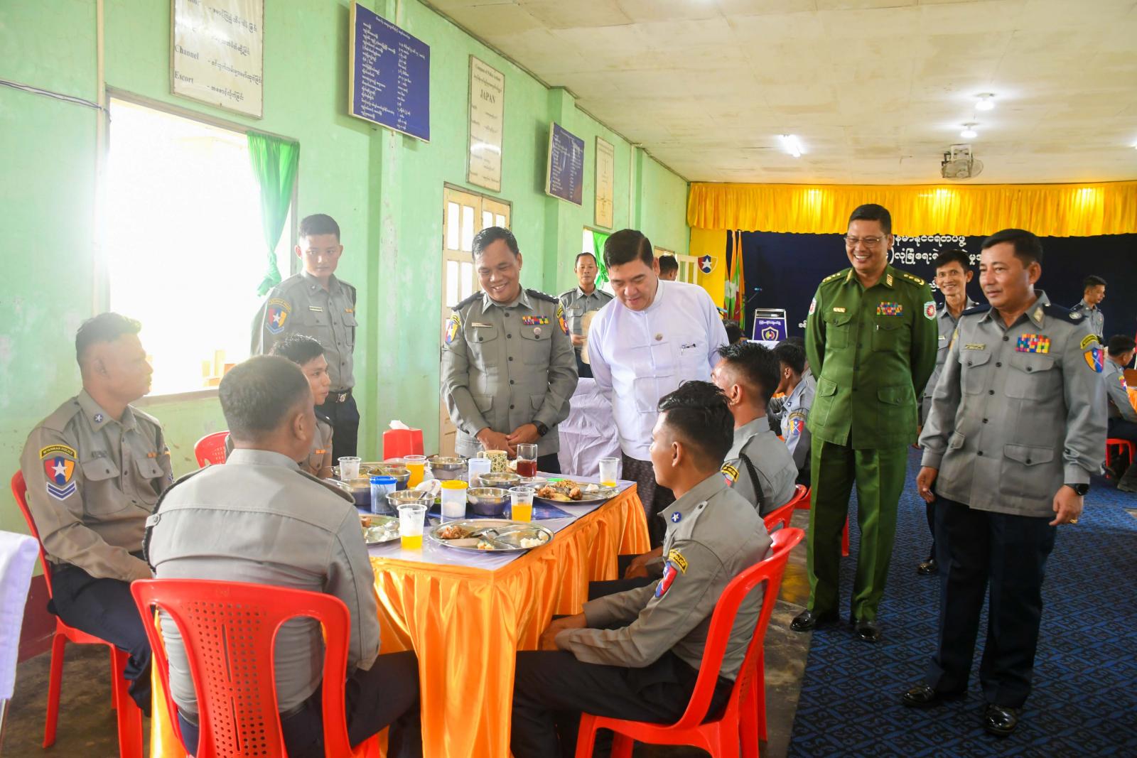 ဦးစွာ ပြည်နယ်ဝန်ကြီးချုပ်နှင့်အဖွဲ့သည် ရဲတပ်ရင်း(၃၆) စားရိပ်သာခန်းမ၌ အရာရှိ၊ တပ်ဖွဲ့ဝင် များနှင့်တူ အထူးနေ့လယ်စာစားပွဲသို့တက်ရောက်ကြပြီး အရာရှိ၊ အခြားအဆင့်၊ တပ်ဖွဲ့ဝင်များနှင့်အတူ နေ့လယ်စာကိုအတူတကွစားသောက်ကြသည်။ ဆက်လက်၍ ပြည်နယ်ဝန်ကြီးချုပ်သည် တပ်ဖွဲ့ဝင်များ နေ့လယ်စာစားသုံးနေမှုအား လှည့်လည်ကြည့်ရှုပြီး ရင်းရင်းနှီးနှီးတွေ့ဆုံနှုတ်ဆက်ခဲ့သည်။