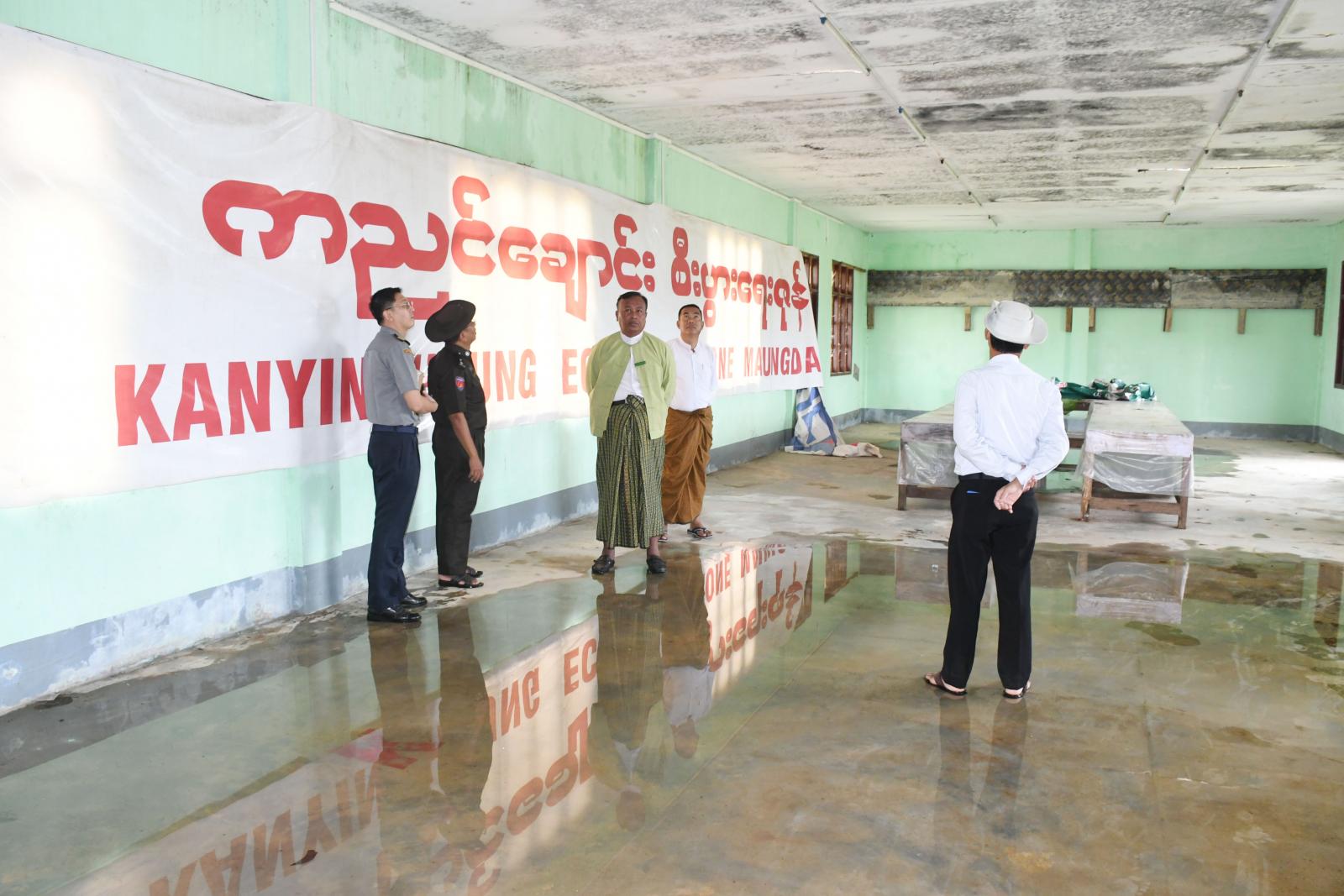 ဦးစွာ ခရိုင်စီမံအုပ်ချုပ်ရေးအဖွဲ့ ဉက္ကဋ္ဌ ဦးနေဦးနှင့်အဖွဲ့ဝင်များ၊ မြို့နယ်စီမံအုပ်ချုပ်ရေးအဖွဲ့ ဉက္ကဋ္ဌ ဦးကံထွန်းအောင်နှင့် အဖွဲ့ဝင်များ၊ ခရိုင်တည်ဆောက်ရေးလုပ်ငန်းများ စိစစ်ရေးကော်မတီဝင်များနှင့် တာဝန်ရှိသူများသည် ရခိုင်ပြည်နယ်အစိုးရအဖွဲ့၏ ညွှန်ကြားချက်အရ ကညင်ချောင်းစီးပွားရေးဇုန်ရှိ ပင်မအဆောက်အဦ အမိုးလန်ပျက်စီးနေမှု အခြေအနေများအား သွားရောက်စစ်ဆေးရာ ကညင်ချောင်း စီးပွားရေးဇုန်ရှိ သက်ဆိုင်ရာတာဝန်ရှိသူများက ပင်မဆောင် အမိုးလန်ပျက်စီးနေမှုများ၊ ပင်မဆောင်အတွင်း လျှပ်စစ်မီးမရရှိသည့်အတွက် ဌာနများအနေဖြင့် အခက်အခဲများရှိပါကြောင်းနှင့် ရေရရှိရေးအတွက် ဆောင်ရွက်နေမှုများအား လိုက်လံပြသရှင်းလင်းတင်ပြခဲ့ကြပြီး အမိုးလန်ပျက်စီးမှု အခြေအနေများအား အသေးစိတ်တွက်ချက်ကာ တင်ပြပေးစေလိုကြောင်း မှာကြားခဲ့သည်။ ယင်းနောက် ခရိုင်စီမံ အုပ်ချုပ်ရေးအဖွဲ့ ဉက္ကဋ္ဌ ဦးနေဦး တာဝန်ရှိသူများနှင့်အတူ မိုခါမုန်တိုင်းဘေးကြောင့် လေဘေးသင့်ပြီး သက္ကယ်ပြင်စခန်းရှိပျက်စီးခဲ့သော လူနေအိမ်အဆောက်အဦ ၉၉ လုံးပျက်စီးခဲ့မှုများအား ဖျက်သိမ်းနိုင်ရေးနှင့်ဆယ်တင်ပစ္စည်းများရရှိနိုင်ရေးအတွက် သွားရောက်ကြည့်ရှုစစ်ဆေးပြီး ပျက်စီးနေမှုအခြေအနေများနှင့်ပတ်သတ်၍ တာဝန်ရှိသူများ ရှင်းလင်းတင်ပြခဲ့ကြရာ ပြန်လည်အသုံးပြုနိုင်မည့် အဆောက် အဦပစ္စည်းများအား စနစ်တကျ သိမ်းဆည်းနိုင်ရေး ဆောင်ရွက်ကြစေရန်မှာကြားခဲ့ကြောင်း သိရသည်။