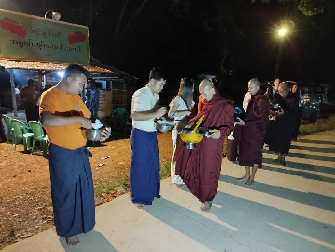 အဆိုပါ အရုဏ်ဆွမ်းအလှူတော်အား ရမ်းဗြဲမြို့နယ်၊ ကျောက်နီမော်တိုက်နယ်ဆေးရုံမှ ဒေါက်တာမင်းနိုင်ကျော် ဇနီးဒေါ်အေးမြင့်ဇံ မိသားစုတို့က ကုသိုလ်ပြု လှူဒါန်းခဲ့ခြင်းဖြစ်ပြီး ထိုသို့ အရုဏ်ဆွမ်းဆက်ကပ်လှူဒါန်းခြင်းများကို အရုဏ်ဆွမ်းလောင်းအသင်း(မအီ)မှ ဦးဆောင်ကြီးမှူး၍ ဝါတွင်းကာလ ဥပုသ်နေ့တိုင်းတွင် မအီမြို့ပေါ်နှင့် ပတ်ဝန်းကျင်ကျေးရွာ ဘုန်းတော်ကြီးကျောင်း (၂၂)ကျောင်းမှ သံဃာတော်အပါး(၇၆)ပါးတို့အား လောင်းလှူသွားမည်ဖြစ်ကြောင်း၊ ဆွမ်းချက်ရန်နှင့် အခြားကိစ္စရပ်များအတွက် မတည်ငွေကို ဆွမ်းလောင်းအသင်းသူ/အသင်းသားများက ထည့်ဝင်မတည်ငွေနှင့် ယခင်နှစ်က လက်ကျန်ရန်ပုံငွေများ၊ အလှူခံရရှိငွေများဖြင့် အသုံးပြုဆောင်ရွက်ပါကြောင်း၊ ယခင်နှစ်က အရုဏ်ဆွမ်းအလှူရှင်များကို ကျပ်(၂၅၀၀၀၀) ဖြင့် သတ်မှတ်အလှူထည့်ဝင်စေခဲ့သော်လည်း ယခုနှစ်တွင် ကျပ်(၃၀၀၀၀၀)နှုန်းဖြင့် သတ်မှတ်ထားပါကြောင်း၊ ဥပုသ်နေ့ရောက်ရှိလာတိုင်းလည်း စေတနာရှင်အလှူရှင်များက လိုအပ်သည်များကို ကဏ္ဍအလိုက် လာရောက်လှူဒါန်းကြသည်ဖြစ်၍ အရုဏ်ဆွမ်းကို လုံလောက်ပြည့်စုံစွာ လောင်းလှူနိုင်ပါကြောင်း၊ အရုဏ်ဆွမ်းလောင်းအသင်း(မအီ)အနေဖြင့် ယခုနှစ်တွင် စတုတ္ထအကြိမ်မြောက် ကုသိုလ်ပြုလောင်းလှူခြင်း ဖြစ်ပါကြောင်းတို့ကို အဆိုပါ ဆွမ်းလောင်းအသင်းကို ဦးစီးဆောင်ရွက်သူ ကိုဖြိုးဝေလင်းက ပြောကြားသည်။