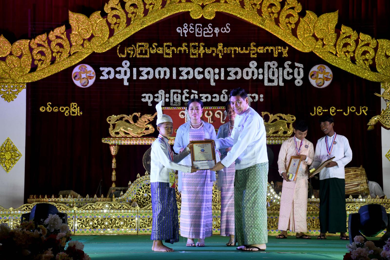 ရခိုင်ပြည်နယ်အဆင့် အဆို၊ အက၊ အရေး၊ တီးပြိုင်ပွဲကို စက်တင်ဘာ ၂၆ ရက်နေ့မှ ၂၉ ရက်နေ့ထိ ကျင်းပခဲ့ရာ ရခိုင်ပြည်နယ်အတွင်းရှိ ခရိုင်အသီးသီးမှ ပြိုင်ပွဲဝင် (၁၄၀) ဦးတို့က သက်ဆိုင်ရာ ဘာသာရပ်အသီးသီးတွင် ပါဝင်ယှဉ်ပြိုင်ခဲ့ကြပြီး ရွှေတံဆိပ်ဆု၊ ငွေတံဆိပ်ဆု၊ ကြေးတံဆိပ်ဆုနှင့် နှစ်သိမ့်ဆုအပါအဝင် ဆုစုစုပေါင်း ၈၆ ဆုကို ပေးအပ်ချီးမြှင့်ခဲ့ကြောင်း သိရသည်။