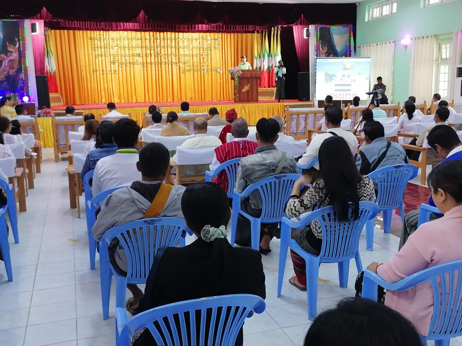 ငွေကြေးခဝါချမှုတိုက်ဖျက်ရေး(ဗဟို)အဖွဲ့ အထွေထွေအုပ်ချုပ်ရေးဦးစီးဌာနနှင့် မြန်မာနိုင်ငံ အိမ်ခြံမြေလုပ်ငန်းဖွံ့ဖြိုးတိုးတက်ရေးအသင်း (ကယားပြည်နယ်)တို့ ပူးပေါင်းကျင်းပသော AML/CFT ဆိုင်ရာ အသိပညာပေးဟောပြောပွဲနှင့် အိမ်ခြံမြေအသိပညာပေးသင်တန်းဖွင့်ပွဲ အခမ်းအနားကို လွိုင်ကော်မြို့နယ်ခန်းမတွင် ယမန်နေ့နံနက်တွင် ကျင်းပပြုလုပ်ခဲ့သည်။