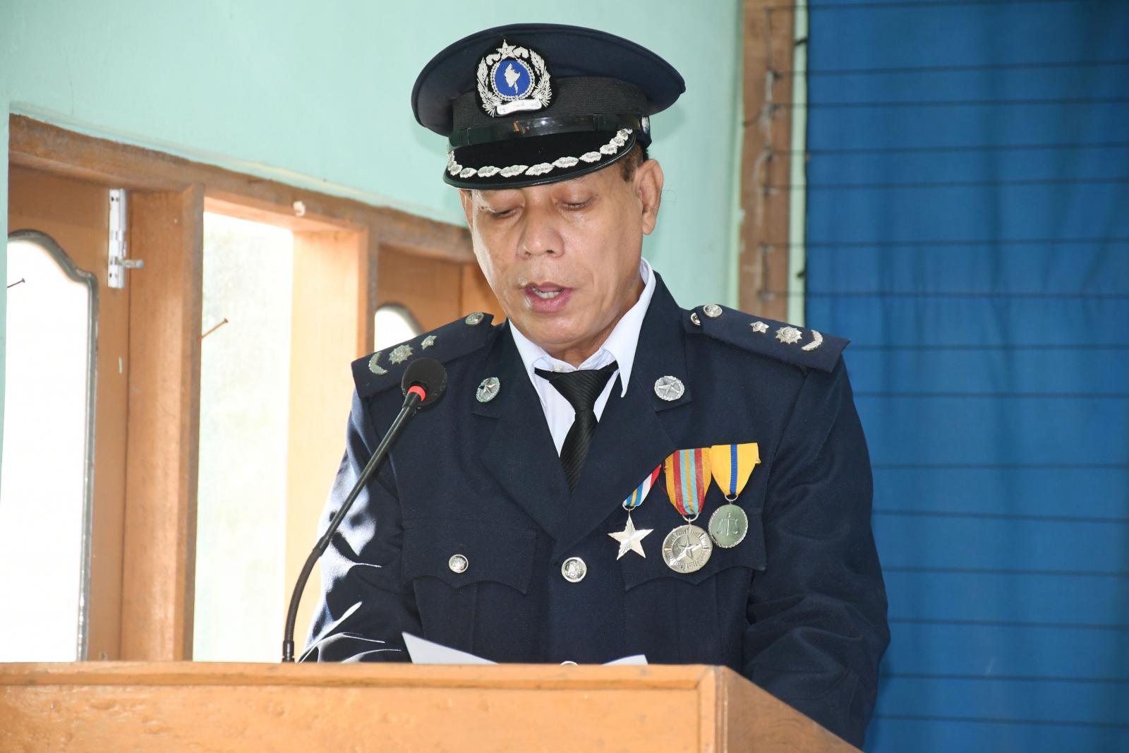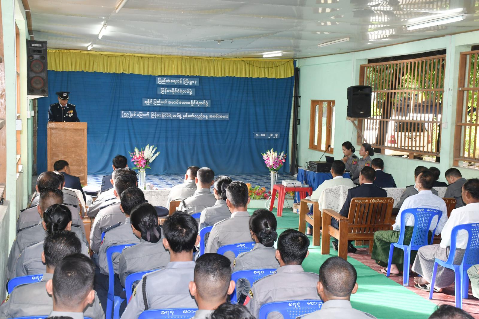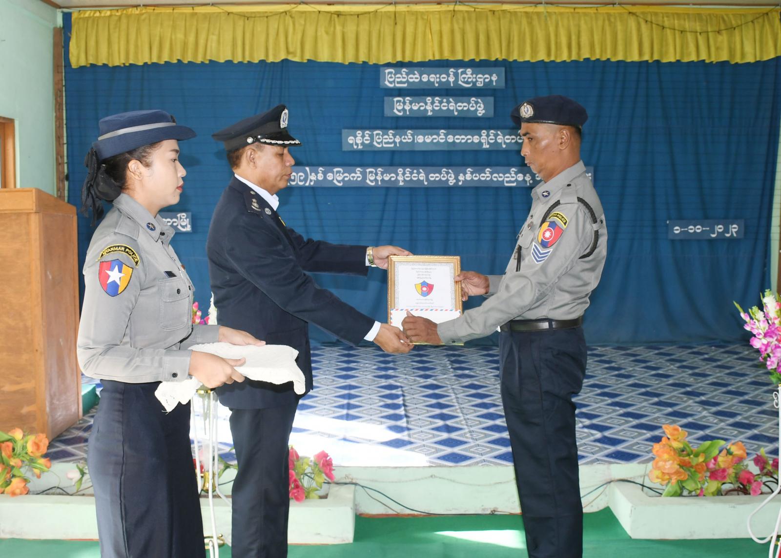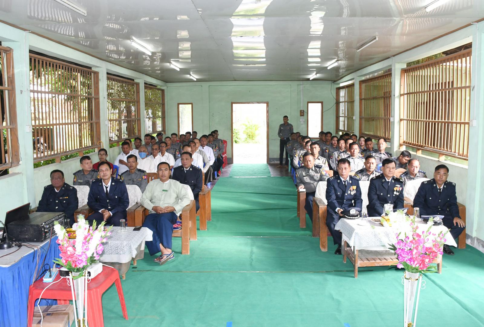 အခမ်းအနားတွင် မောင်တောခရိုင်ရဲတပ်ဖွဲ့၊ ခရိုင်ရဲတပ်ဖွဲ့မှူး ဒုတိယရဲမှူးကြီး ကိုကိုလေးက (၅၉)နှစ်မြောက် မြန်မာနိုင်ငံရဲတပ်ဖွဲ့နေ့သို့ ပြည်ထဲရေးဝန်ကြီးဌာန၊ဒုတိယဝန်ကြီး၊ မြန်မာနိုင်ငံရဲတပ်ဖွဲ့ ရဲချုပ် ဒုတိယဗိုလ်ချုပ်ကြီး နီလင်းအောင်မှ ပေးပို့သော သဝဏ်လွှာအား ဖတ်ကြားခဲ့သည်။ ထို့နောက် မောင်တောခရိုင်ရဲတပ်ဖွဲ့မှ ၂၀၂၃ ခုနှစ်အတွင်း ခရိုင်အဆင့် ရုံးလုပ်ငန်းများကို တာဝန်ကျေပွန်စွာ ထမ်းဆောင်ခဲ့သူများနှင့် မှုခင်းကိစ္စရပ်များတွင် စွမ်းစွမ်းတမံ ထူးချွန်စွာ ဖော်ထုတ်နိုင်ခဲ့သောရဲတပ်ဖွဲ့ဝင်များအား ခရိုင်ရဲတပ်ဖွဲ့မှူး၊ မြို့နယ်စီမံအုပ်ချုပ်ရေးအဖွဲ့ဥက္ကဋ္ဌ ဦးကံထွန်းအောင်နှင့် တာဝန်ရှိသူများက အမှုထမ်းကောင်းလက်မှတ်နှင့် ဂုဏ်ပြုဆုငွေ များချီးမြှင့်ပေးခဲ့သည်။ယင်းနောက်(၅၉)နှစ်မြောက် မြန်မာနိုင်ငံ ရဲတပ်ဖွဲ့နေ့အဖြစ် မြန်မာနိုင်ငံရဲတပ်ဖွဲ့နေ့ အထိမ်းအမှတ်အဖြစ် Video Clip ဖြင့်ပြသခဲ့ပြီး အသိပညာပေး လက်ကမ်းစာစောင်များကိုဖြန့်ဝေပေးခဲ့သည်။ အခမ်းအနားသို့ ခရိုင်ရဲတပ်ဖွဲ့မှူး ဒုတိယ ရဲမှူးကြီး ကိုကိုလေး၊ မြို့နယ် စီမံအုပ်ချုပ်ရေးအဖွဲ့ဥက္ကဋ္ဌ ဦးကံထွန်းအောင်၊ ဒုတိယ ခရိုင် ရဲတပ်ဖွဲ့မှူး ရဲမှူး ကျော်ကိုကို၊ ခရိုင် အကူရဲတပ်ခွဲမှူး ရဲမှူးကျော်လှိုင်၊ မြို့နယ်ရဲတပ်ဖွဲ့မှူး ရဲမှူးသိန်းနိုင် ၊အမှတ်(၄၆) မူးယစ်ရဲတပ်ဖွဲ့စု ရဲမှူး မြင့်သောင်း၊ မြို့မရဲစခန်းမှူး ဒုတိယရဲမှူး ထွန်းနိုင်၊ ဖိတ်ကြားထားသည့် ဧည့်သည်တော်များ၊ အငြိမ်းစား ဝန်ထမ်းများ၊ ရဲအရာရှိများ၊ ရဲတပ်ဖွဲ့ဝင်များတက်ရောက်ခဲ့ကြ ကြောင်းသိရသည်။