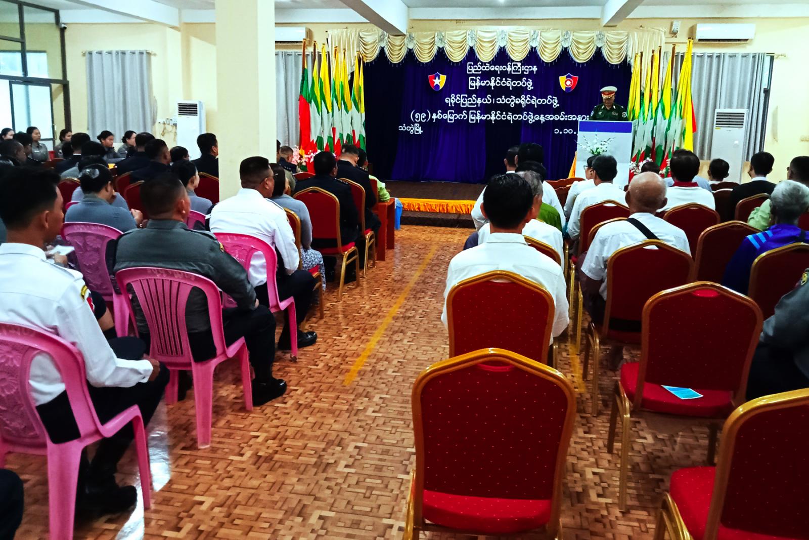 ရှေးဦးစွာ အနောက်ပိုင်းတိုင်းစစ်ဌာနချုပ်၊ တိုင်းဦးစီးချုပ် ဗိုလ်မှူးချုပ်ကျော်ကျော်သန်းက ဩဝါဒ အမှာစကားပြောကြားခဲ့သည်။ ထို့နောက် သံတွဲခရိုင် ရဲတပ်ဖွဲ့မှူး ဒုတိယရဲမှူးကြီးသန်းကျော်က ရဲချုပ်၏ သဝဏ်လွှာအား ဖတ်ကြားခဲ့သည်။