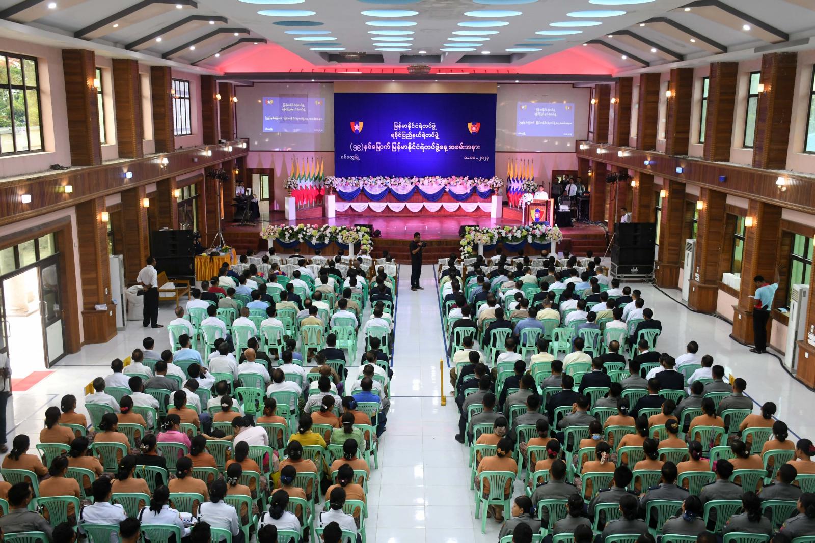 အောက်တိုဘာလ (၁) ရက်နေ့တွင် ကျရောက်သော (၅၉) နှစ်မြောက် မြန်မာနိုင်ငံရဲတပ်ဖွဲ့နေ့ အခမ်းအနားကို ယနေ့နံနက်ပိုင်းက စစ်တွေမြို့၊ ခိုင်သဇင်ခန်းမ၌ ကျင်းပရာ ရခိုင်ပြည်နယ် သဘာဝ ဘေးအန္တရာယ်ဆိုင်ရာ စီမံခန့်ခွဲမှုအဖွဲ့ဥက္ကဋ္ဌ၊ ရခိုင်ပြည်နယ် ဝန်ကြီးချုပ် ဦးထိန်လင်း၊ ပြည်နယ်တရား လွှတ်တော်တရားသူကြီးချုပ်၊ ပြည်နယ်အစိုးရအဖွဲ့ဝင်များ၊ ဌာနဆိုင်ရာများ၊ နိုင်ငံရေးပါတီများမှ ကိုယ်စားလှယ်များ၊ မြို့မိ၊ မြို့ဖအဖွဲ့ဝင်များ၊ ရဲတပ်ဖွဲ့ဝင်များနှင့် မိသားစုဝင်များ၊ အငြိမ်းစားရဲတပ်ဖွဲ့ဝင်များ၊ လူမှုရေးအဖွဲ့အစည်းများမှကိုယ်စားလှယ်များ၊ ဖိတ်ကြားထားသူများ တက်ရောက်ကြသည်။