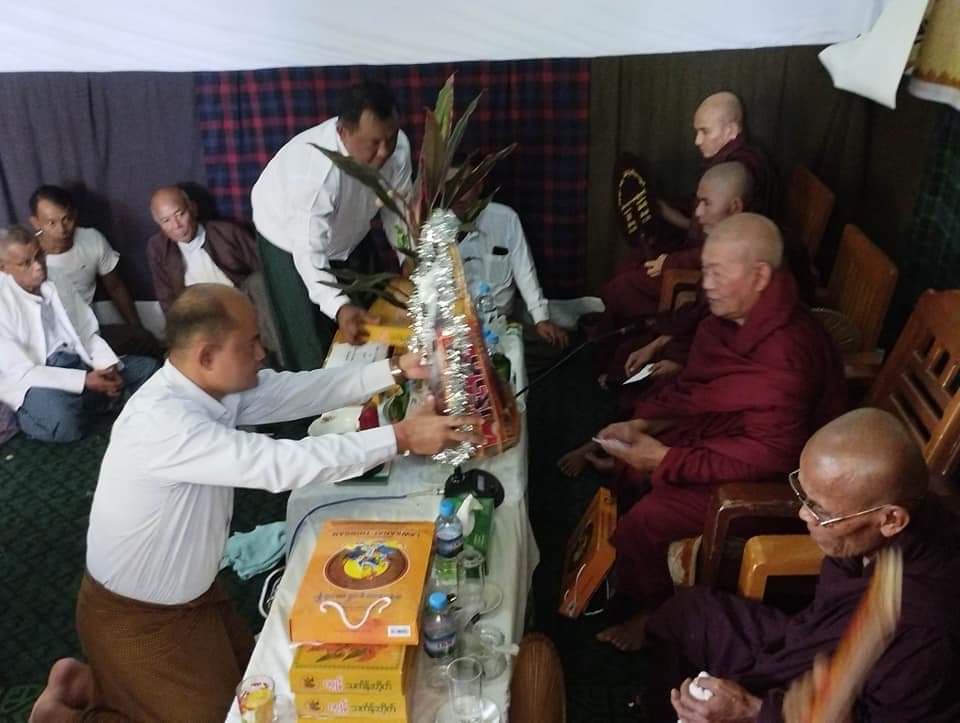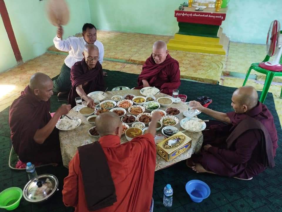 အခမ်းအနားအပြီးတွင် ဆရာတော်သံဃာတော်များအား မအီနယ်မြေရဲစခန်းမှူး ရဲအုပ်ချစ်ထွန်း နှင့် တပ်ဖွဲ့ဝင်မိသားစုများက အရုဏ်ဆွမ်းဆက်ကပ်လှူဒါန်းခဲ့ကြပြီး (၅၉)နှစ်မြောက် မြန်မာနိုင်ငံရဲတပ်ဖွဲ့နေ့ကို ဂုဏ်ပြုသောအားဖြင့် ဝါဆိုသင်္ကန်းနှင့် အရုဏ်ဆွမ်း ဆက်ကပ်လှူဒါန်းပွဲ အခမ်းအနား အောင်မြင်စွာပြီးမြောက်ခဲ့ကြောင်း သိရသည်။