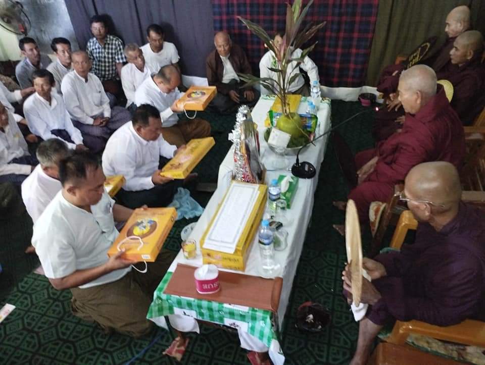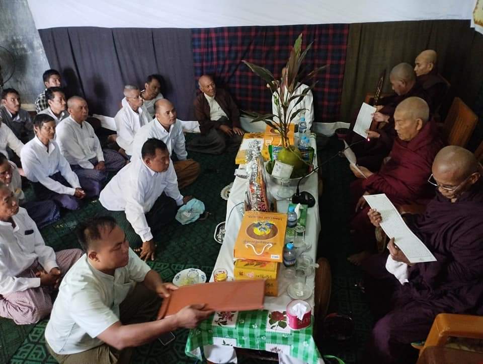 ထိုသို့ ဝါဆိုသင်္ကန်းနှင့် အရုဏ်ဆွမ်း ဆက်ကပ်လှူဒါန်းန်းခြင်းကို မအီနယ်မြေရဲစခန်းမှူး ရဲအုပ်ချစ်ထွန်း၏ ဦးဆောင်မှုဖြင့် နယ်မြေရဲစခန်း တပ်ဖွဲ့ဝင်မိသားစုများက စုပေါင်းဆောင်ရွက်ခဲ့ခြင်းဖြစ်ပြီး ရှေးဦးစွာ အခမ်းအနားကို နမောတဿ (၃) ကြိမ် ရွတ်ဆိုပူဇော်ပြီး အင်တောင် ကျောင်းတိုက်၊ ပဓာနနာယကဆရာတော် ဘဒ္ဒန္တကေသရထံမှ ငါးပါးသီလခံယူ ဆောက်တည်ခဲ့ကြသည်။ ထို့နောက် ဝါဆိုသင်္ကန်းဆက်ကပ်လှူဒါန်းရခြင်း၏ အကျိုးတရားတော်အား နာယူခဲ့ကြသည်။ ဆက်လက်ပြီး ဆရာတော်သံဃာတော်များက အန္တရာယ်ကင်းပရိတ်ပဌာန်း တရားတော်များအား ရွတ်ပွားသရဇ္ဈာယ်ပူဇော်ခဲ့ကြပြီး နယ်မြေရဲစခန်းမှူး ရဲအုပ်ချစ်ထွန်းနှင့် တပ်ဖွဲ့ဝင်မိသားစုများက ဝါဆိုသင်္ကန်းနှင့် လှူဖွယ်ဝတ္ထုများကို ဆက်ကပ်လှူဒါန်းခဲ့ကြသည်။ ထို့နောက် အင်တောင်ကျောင်းတိုက်၊ ပဓာန နာယကဆရာတော်ထံ၌ လှူဒါန်းမှု အစုစုတို့အတွက် ရေစက်သွန်းချအမျှပေးဝေခဲ့ကြပြီး နမောတဿ (၃) ကြိမ်ရွတ်ဆို၍ အခမ်းအနားကို ရုပ်သိမ်းခဲ့သည်။