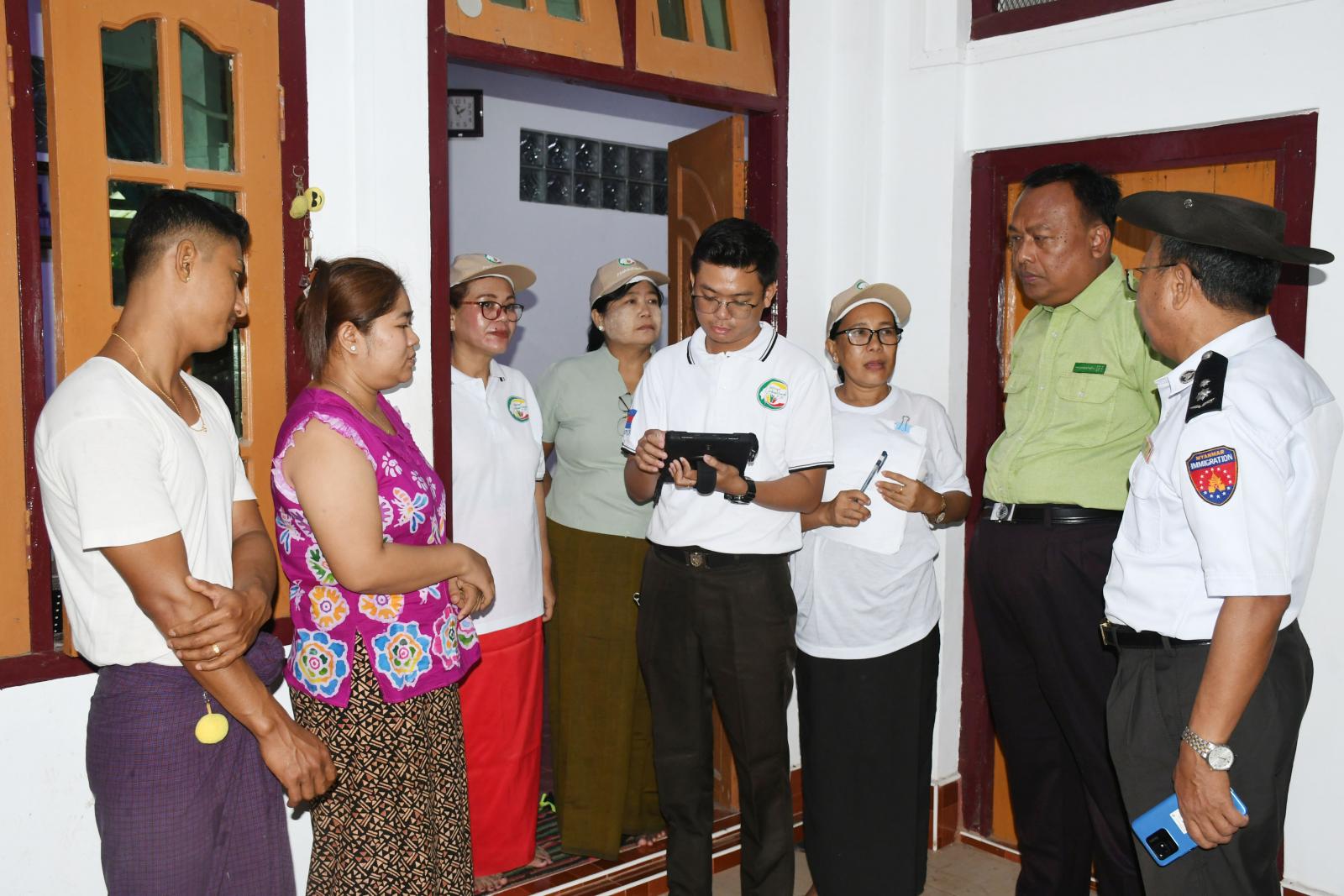 ရခိုင်ပြည်နယ်၊ မောင်တောခရိုင်၊ မောင်တောမြို့၌ မြေပြင်တစ်အိမ်တက်ဆင်း စမ်းသပ်သန်းခေါင်စာရင်း ဆက်လက်ကောက်ယူခြင်းကို ယနေ့နံနက် ၉ နာရီအချိန် မြို့မအနောက်ရပ်ကွက် ကောက်ကွက်တစ်ကွက်တွင် စာရင်းကောက်အဖွဲ့မှ အဖွဲ့များခွဲ၍ စမ်းသပ်သန်းခေါင်စာရင်း ကောက်ယူလျက်ရှိရာ ခရိုင်သန်းခေါင်စာရင်း ကော်မတီဥက္ကဋ္ဌ ဦးနေဦးနှင့် ကော်မတီအဖွဲ့ဝင်များက သွားရောက်ကြည့်ရှုအားပေးပြီး လိုအပ်သည်များကို ပေါင်းစပ်ညှိနှိုင်း ဆောင်ရွက်ပေးခဲ့သည်။