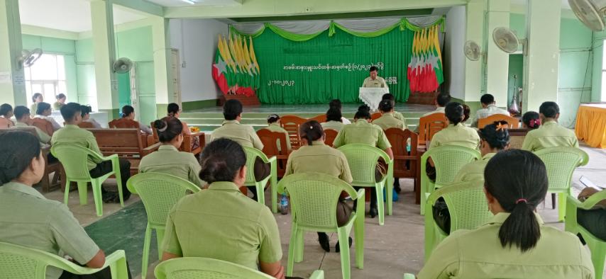 ရခိုင်ပြည်နယ်၊ ကျောက်ဖြူခရိုင်၊ ရမ်းဗြဲမြို့၌ အထွေအထွေအုပ်ချူပ်ရေးဦးစီးဌာနမှ ဖွင့်လှစ်သည့် အခမ်းအနားမှုး သင်တန်း(၂/၂၀၂၃) ဖွင့်ပွဲ အခမ်းအနားကို ယနေ့နံနက်ပိုင်းက မြို့နယ်အထွေအထွေအုပ်ချုပ်ရေးဦးစီးဌာန၊ ရမ္မာဝတီခန်းမတွင် ကျင်းပပြုလုပ်ရာ မြို့နယ်အုပ်ချုပ်ရေးမှူးနှင့် ဝန်ထမ်းများ၊ နည်းပြ ဆရာ/ဆရာမများ တက်ရောက်ကြသည်။