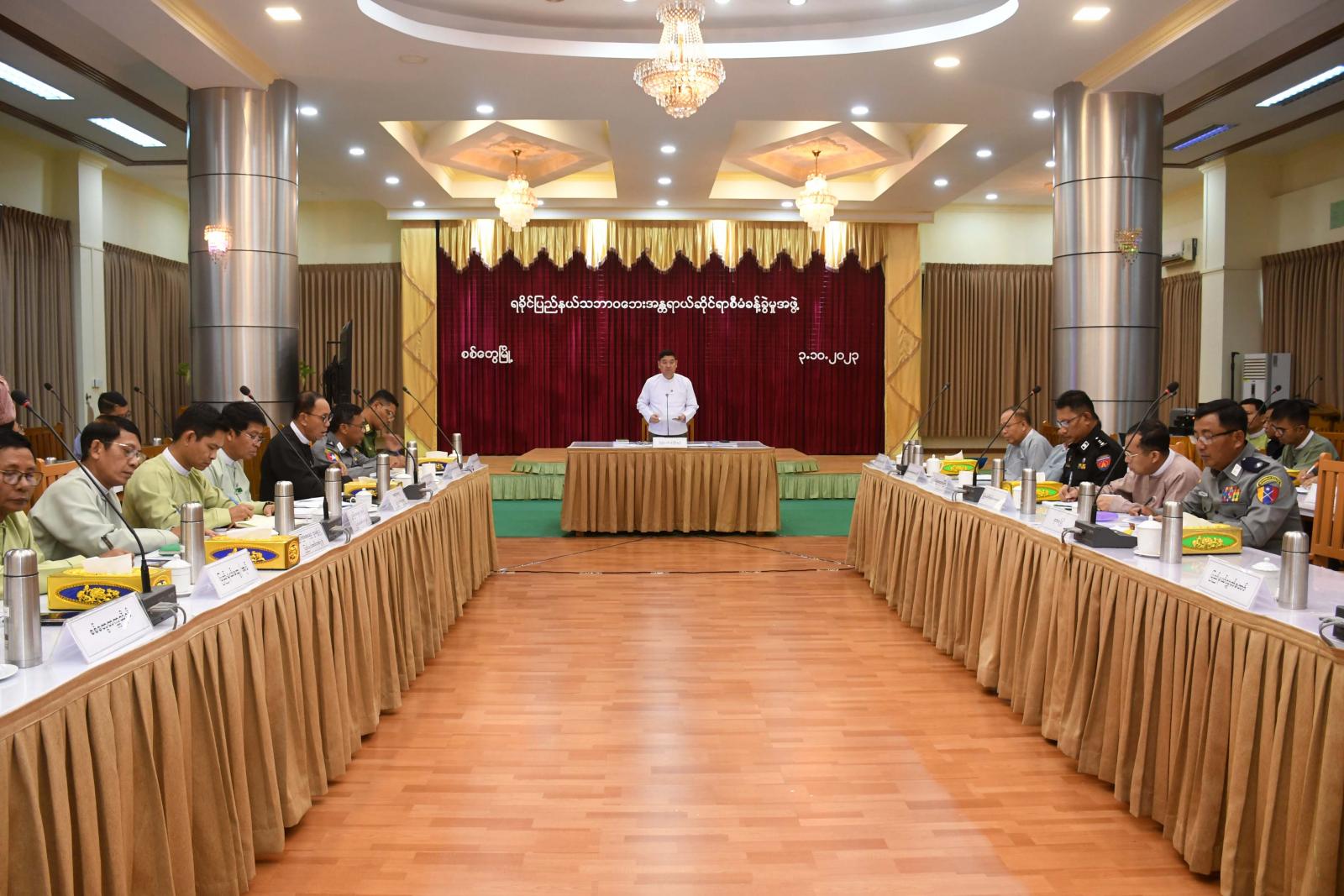 အစည်းအဝေးတွင် ရခိုင်ပြည်နယ်ဝန်ကြီးချုပ်ဦးထိန်လင်းက ဆိုင်ကလုန်းမုန်တိုင်း(မိုခါ)နှင့် ပတ်သက်ပြီး သဘာဝဘေးအန္တရာယ်ဆိုင်ရာ စီမံခန့်ခွဲမှုဗဟိုဌာန၏ စာရင်းတွေ့ရှိချက်များနှင့် အာဆီယံအရေးပေါ်တုံ့ပြန်ရေးနှင့် ဆန်းစစ်လေ့လာရေးအဖွဲ့(ASEAN-ERAT)အဖွဲ့တို့၏ အစီရင်ခံစာပါ တွေ့ရှိချက်များကိုနှိုင်းယှဉ်ပြီး အမျိုးသားသဘာဝဘေးအန္တရာယ်ဆိုင်ရာ စီမံခန့်ခွဲမှုကော်မတီမှ နိုင်ငံတော်စီမံအုပ်ချုပ်ရေးကောင်စီရုံးသို့ တင်ပြခဲ့သည့်အပေါ်တွင် နိုင်ငံတော်အကြီးအကဲ၏မှတ်ချက်ပြု ညွှန်ကြားချက်များနှင့်အညီ ပြန်လည်ထူထောင်ရေး လုပ်ငန်းများ ဆောင်ရွက်နိုင်ရန် လတ်တလောကာလ၊ ကာလလတ်၊ ကာလရှည် စီမံကိန်းများရေးဆွဲထားရှိမှုအပေါ် ဆွေးနွေးသုံးသပ်အတည်ပြုရန် ညှိနှိုင်းအစည်းအဝေး ပြုလုပ်ရခြင်းဖြစ်ကြောင်း၊ ပထမအကြိမ်အစည်းအဝေးကို စက်တင်ဘာလ နောက်ဆုံး အပတ်ကပြုလုပ်ခဲ့ပြီး ယခုဒုတိယအကြိမ် ထပ်မံပြုလုပ်သည့်အစည်းအဝေးဖြစ်ကြာင်း၊ စီမံကိန်းများရေးဆွဲပြုစုရာတွင် သက်ဆိုင်ရာဌာနအကြီးအကဲများ၏ တာဝန်ယူမှု၊ တာဝန်ခံမှုနှင့်အတူ တိကျသည့် ကိန်းဂဏန်းအချက်အလက်များဖြစ်စေရန် လိုအပ်မည်ဖြစ်ကြောင်း၊ ထို့အတူ ဌာနများကို တာဝန်ယူရသည့် သက်ဆိုင်ရာပြည်နယ်ဝန်ကြီးများကလည်း မိမိတို့၏တာဝန်ယူရသည့် ဌာနများ၏ တင်ပြချက်များအပေါ်တွင် ပြည့်စုံကောင်းမွန်သည့် အချက်အလက်များဖြစ်စေရန် ဝိုင်းဝန်းဆွေးနွေးပြီး အဆုံးအဖြတ်ပေးရမည်ဖြစ်ကြောင်း၊ စီမံကိန်းလုပ်ငန်းများကို ရေးဆွဲရာတွင်လည်း ယခင်အစည်းအဝေးတွင် မှာကြားခဲ့သကဲ့သို့ အမှန်တကယ်အကောင်အထည်ဖော်နိုင်သည့် လုပ်ငန်းများဖြစ်စေရန်လည်း လိုအပ် မည်ဖြစ်ကြောင်း၊ ရေးဆွဲထားသည့် စီမံကိန်းလုပ်ငန်းများသည် မူလစီမံကိန်းနှင့်ချိတ်ဆက်မိပြီး မြေပြင်တွင်လက်တွေ့ဆောင်ရွက်မည့် လုပ်ငန်းများကို ရေးဆွဲတင်ပြရန်၊ ကိန်းဂဏန်းအချက်အလက်များ မှန်ကန်ရန်၊ ကာလရှည်ဆောင်ရွက်မည့် အစီအစဉ်များကို ၂၀၂၄-၂၀၂၅ နှင့် ၂၀၂၅-၂၀၂၆ ဘဏ္ဍာနှစ်များအထိ ပြည့်ပြည့်စုံစုံရေးသားပြုစုရန်၊ စီမံကိန်းရေးဆွဲရာမှာလည်း မိမိတာဝန်ယူနိုင်သည့်အပိုင်း၊ မိမိဌာန၏ရည်မှန်းချက်၊ ချမျတ်ထားသည့် စီမိကိန်းများအပေါ်သွေဖီမသွားအောင် စနစ်တကျစီမံရေးဆွဲရန်၊ သဘာဝပတ်ဝန်းကျင်ထိန်းသိမ်းရေးလုပ်ငန်းများ၊ သဘာဝဘေးအန္တရာယ်ဆိုင်ရာ ကြိုတင်ကာကွယ်ရေးလုပ်ငန်းများနှင့် အသိပညာပေးလုပ်ငန်းများကို စီမံချက်ရေးဆွဲဆောင်ရွက်ရန်ဖြစ်ကြောင်း၊ ထို့ကြောင့် ယခုအစည်းအဝေးတွင် ဖွဲ့စည်းထားသည့် ကော်မတီအနေဖြင့် မိမိတို့၏ ဆောင်ရွက်ထားမှုများကို ရှင်းလင်းတင်ပြပေးရန်နှင့် တင်ပြချက်အပေါ်တွင် သက်ဆိုင်ရာ ဝန်ကြီးများကလည်း သုံးသပ်ပြီး ဆွေးန