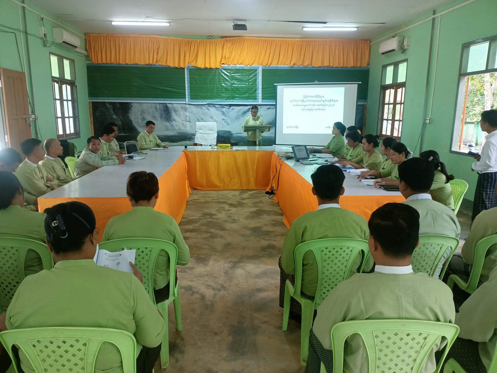 ဝန်ထမ်းများ အခမ်းအနားမှူးအဖြစ် တာဝန်ထမ်းဆောင်ရာတွင် စနစ်တကျ ဆောင်ရွက်နိုင်စေရန် ရည်ရွယ်၍ ဘူးသီးတောင်မြို့နယ် အထွေထွေအုပ်ချုပ်ရေးဦးစီးဌာနမှ ကြီးမှူး၍ အခမ်းအနားမှူးသင်တန်းအမှတ်စဉ် (၁/၂၀၂၃)ကို ယနေ့နံနက် ၁၀ နာရီက မြို့နယ်အထွေထွေအုပ်ချုပ်ရေးဦးစီးဌာနရုံး အစည်းအဝေးခန်းမတွင် ဖွင့်လှစ်သင်ကြားလျက်ရှိသည်။