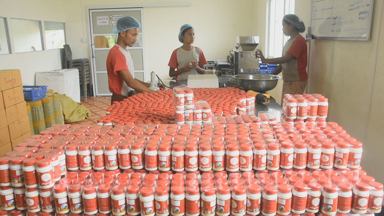 ဖြေ။ ကျွန်တော်တို့ ထုတ်ကုန်တွေက ငရုတ်သီးဆိုလည်း ကိုယ်တိုင်စိုက်ပါတယ်။ အခြားသော သီးနှံတွေကိုလည်း လာမယ့်နှစ်မှာ နိုင်ငံတော်အစိုးရရဲ့ အကူအညီကို ရယူပြီးဆောင်ရွက်ဖို့ လျာထားတာလည်း ရှိပါတယ်။ ဒီထုတ်ကုန်တွေဟာ ကိုယ့်ဒေသတွင်းစိုက်တဲ့ ထုတ်ကုန်တွေ ဖြစ်တဲ့အပြင် ထုတ်ကုန်တွေကို အခြောက်လှန်းတဲ့အခါမှာလည်း Solar Dryer လို့ခေါ်တဲ့ နေရောင်ခြည်စွမ်းအင်အသုံးချတဲ့ တုံးတွေနဲ့ နေလှန်းတဲ့စနစ်နဲ့သွားနေပါတယ်။ ဒီလို လုပ်တဲ့အတွက် မိမိတို့ရဲ့ ထုတ်ကုန်တွေလည်း သန့်ရှင်းမှုရှိတယ်၊ နေလှန်းလိုက်၊ ပြန်သိမ်း လိုက်ဆိုတဲ့ ကြန့်ကြာမှုတွေကိုလည်း ကာကွယ်ပြီးသားဖြစ်တယ်။ အရည်အသွေး၊ အရောင်အဆင်း၊ နောက်ဆုံး ကျေးငှက်တိရစ္ဆာန်တွေရဲ့ အန္တရာယ်တွေကအစ ကာကွယ်ပြီးသား ဖြစ်တဲ့အတွက် ဒီထုတ်ကုန်တွေမှာ မှိုလုံးဝမရှိတဲ့ စားသောက်ကုန်တွေဖြစ်ပါတယ်။ မီးဖိုချောင်သုံး စားသောက်ကုန်ဖြစ်တဲ့အတွက် ကျန်းမာရေးနဲ့ညီညွတ်ဖို့ အထူးလိုအပ်ပါတယ်။ အဲဒီအချက်ကိုတော့ ဂရုစိုက်ပြီးထုတ်လုပ်နေပါတယ်။