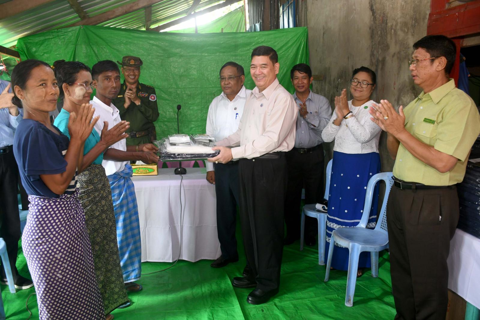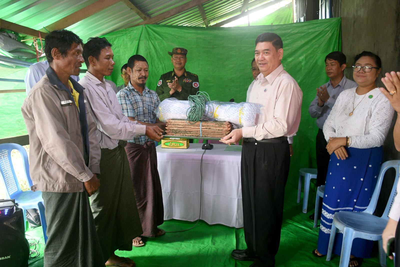 ဆက်လက်၍ ပြည်နယ်ဝန်ကြီးချုပ်နှင့် ပြည်နယ်ဝန်ကြီးများက ကျေးရွာသူ၊ ကျေးရွာသားများ အတွက် စားသောက်ဖွယ်ရာများ၊ အသုံးအဆောင်ပစ္စည်းများ၊ ဟင်းသီးဟင်းရွက်မျိုးစေ့များ၊ ငါးဖမ်း ကိရိယာများကို ပေးအပ်ကြပြီး ကျေးရွာသားတစ်ဦးက ကျေးဇူးတင်စကားပြောကြားကာ ကျေးရွာသူ၊ ကျေးရွာသားများအား ရင်းရင်းနှီးနှီး တွေ့ဆုံနှုတ်ဆက်ကြသည်။