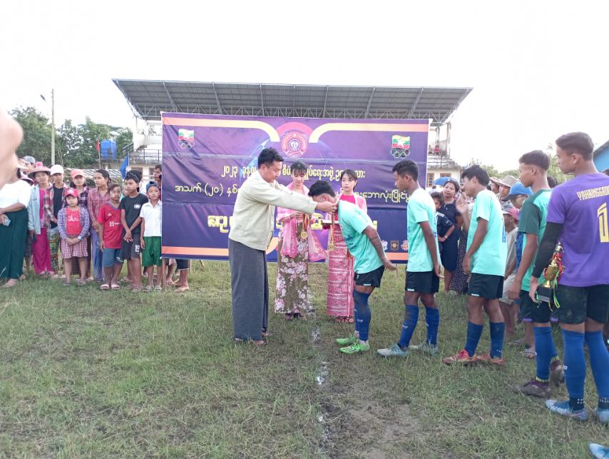 ရခိုင်ပြည်နယ်၊ သံတွဲခရိုင်၊ ဂွမြို့၌မြို့နယ် စီမံအုပ်ချုပ်ရေးအဖွဲ့ ဥက္ကဋ္ဌဖလားရပ်ကွက်/ကျေးရွာ ပေါင်းစုံ အသက် ၂၀ နှစ်အောက် အမျိုးသား ဘောလုံးပြိုင်ပွဲ ဆုချီးမြှင့်ပွဲ အခမ်းအနားကို ယနေ့ ညနေ၅နာရီအချိန်က မြို့မအားကစား ဘောလုံးကွင်းတွင် ကျင်းပပြုလုပ်ခဲ့သည်။