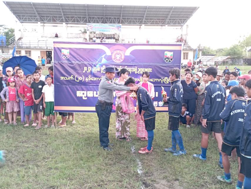 ၂၀၂၃ ခုနှစ်၊ မြို့နယ်စီမံအုပ်ချုပ်ရေးအဖွဲ့ ဥက္ကဋ္ဌဖလား ရပ်ကွက်/ကျေးရွာပေါင်းစုံ အသက် ၂၀ နှစ်အောက် အမျိုးသားဘောလုံးပြိုင်ပွဲကို နိုဝင်ဘာလ(၁၆)ရက်နေ့မှအောက်တိုဘာလ (၄)ရက် နေ့အထိ အသင်း(၁၀)သင်း ယှဉ်ပြိုင်ကစားခဲ့ရာ ယနေ့တွင် ဗိုလ်လုပွဲအဖြစ် ရဟိုင်ကူးတို့ အသင်း နှင့် ကျိန္တလီအသင်းတို့၏ ကစားပွဲတွင် ရဟိုင်ကူးတို့အသင်းက ပထမဆုဖြင့် မြို့နယ်စီမံအုပ်ချုပ် ရေးအဖွဲ့ ဥက္ကဋ္ဌဖလားဆုကို ရရှိခဲ့သဖြင့် မြို့နယ်စီမံအုပ်ချုပ်ရေးအဖွဲ့ ဥက္ကဋ္ဌ ဦးဇာနည်ကျော်က ဆုချီးမြှင့်ပေးအပ်ခဲ့ကြောင်းနှင့် လည်ဆွဲပြားတံဆိပ်၊ငွေသားဆုများကိုလည်း ချီးမြှင့်ပေးအပ်ခဲ့ ကြောင်းသိရသည်။ ဆက်လက်၍ ဒုတိယဆုရရှိသည့် ကျိန္တလီအသင်းကို မြို့နယ်ရဲတပ်ဖွဲ့မှူး ရဲမှူး ခင်မောင်ထွန်းက လည်းကောင်း၊ တတိယဆုရရှိသည့် မြို့မအသင်းကို မြို့နယ်စီမံအုပ်ချုပ်ရေးအဖွဲ့၊ အဖွဲ့ဝင် ဦးလှတင့်ကလည်းကောင်း၊ ပွဲစဥ်တစ်လျှောက် ဂိုးသမားအကောင်းဆုံးဆု၊ ရှေ့တန်း၊ အလယ်တန်း၊ နောက်တန်းအကောင်းဆုံးဆုများနှင့် အသန့်ရှင်းဆုံး အသင်းဆုများအား မြို့နယ်ဌာနဆိုင်ရာ အကြီးအကဲများနှင့် တာဝန်ရှိသူများက လည်းကောင်း အသီးသီးချီးမြှင့်ပေး အပ်ခဲ့ကြကြောင်း သိရသည်။