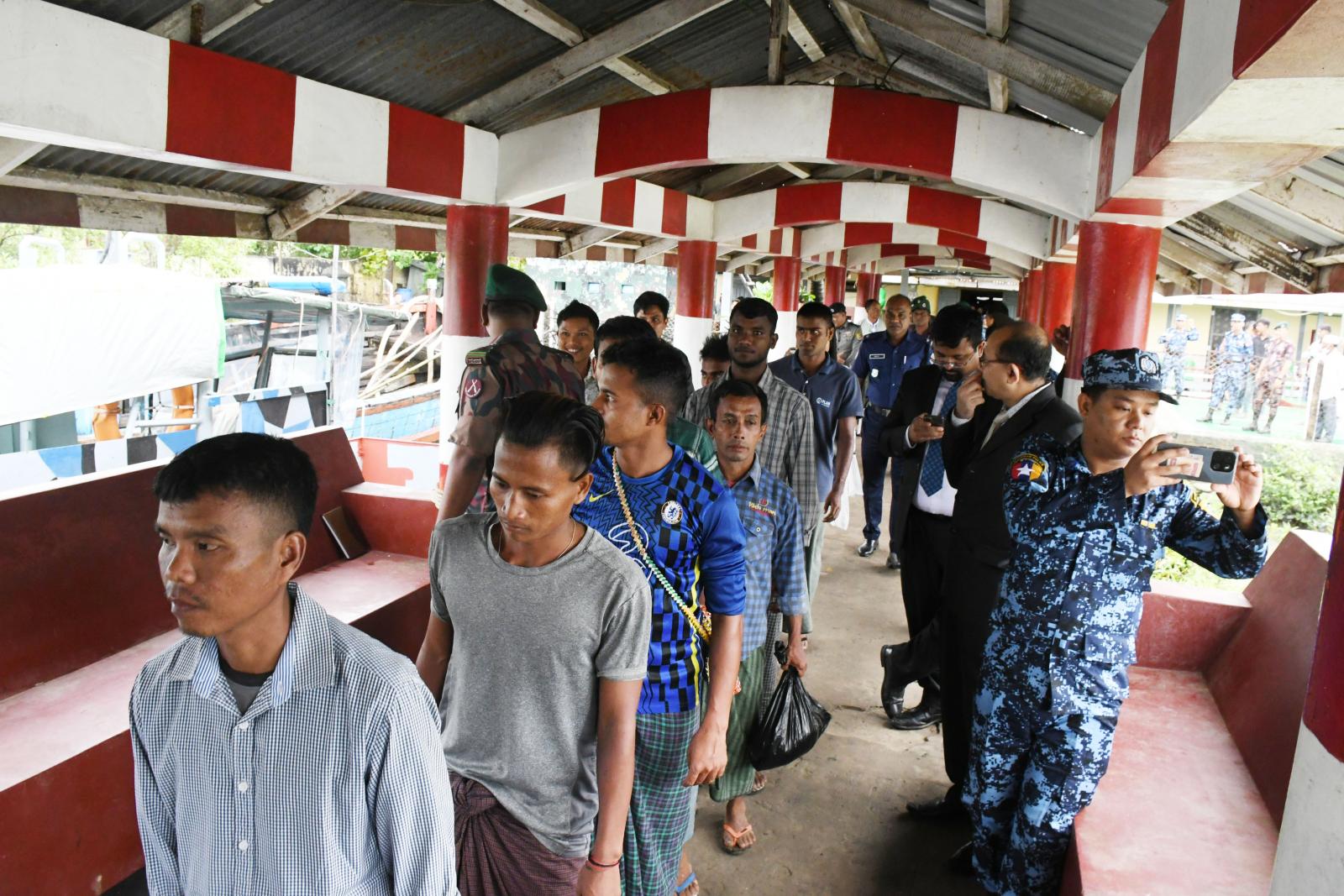 ထို့နောက် ဉပဒေနှင့်အညီ အရေးယူ ဆောင်ရွက်ပြီးဖြစ်သော ပြည်နှင်လွှဲပြောင်းပေးမည့် ဘင်္ဂလားဒေ့ရှ်နိုင်ငံသား(၂၉) ဦးအား လူတွေ့စစ်ဆေးပြီး လွှဲပြောင်းလက်ခံမှုမှတ်တမ်းအား လက်မှတ်ရေးထိုး လွှဲပြောင်းလက်ခံပြီး နှစ်နိုင်ငံအဖွဲ့များမှ အပြန်အလှန်လက်ဆောင်ပစ္စည်းများပေးအပ်ကာ ဘင်္ဂလားဒေ့ရှ်နိုင်ငံ၊ အမှတ်(၂)နယ်ခြားစောင့်တပ်ရင်း ၊ တပ်ရင်းမှူး Lt.Col Md Mohiuddin Ahmed, BGBMS, Commanding Officer, Tenaf Battalion ဦးဆောင်သော အဖွဲ့ဝင် ၁၅ ဦး ပါဝင်သောအဖွဲ့သည် ဘင်္ဂလားဒေ့ရှ်နိုင်ငံသား(၂၉) ဦးအား ခေါ်ဆောင်၍ အမှတ်(၁) ဝင်/ထွက် စခန်း(POE) ဆိပ်ကမ်းမှ မွန်းလွှဲ(၁၃:၁၀)အချိန် တစ်ဘက် ဘင်္ဂလား ဒေ့ရှ်နိုင်ငံသို့ Speed Boat (၂)စီး၊ ဘင်္ဂလားဒေ့ရှ်နိုင်ငံသားများတင်ဆောင်မည့် စက်လှေတစ်စီးဖြင့် ပြန်လည်ထွက်ခွာသွားကြောင်း သိရသည်။