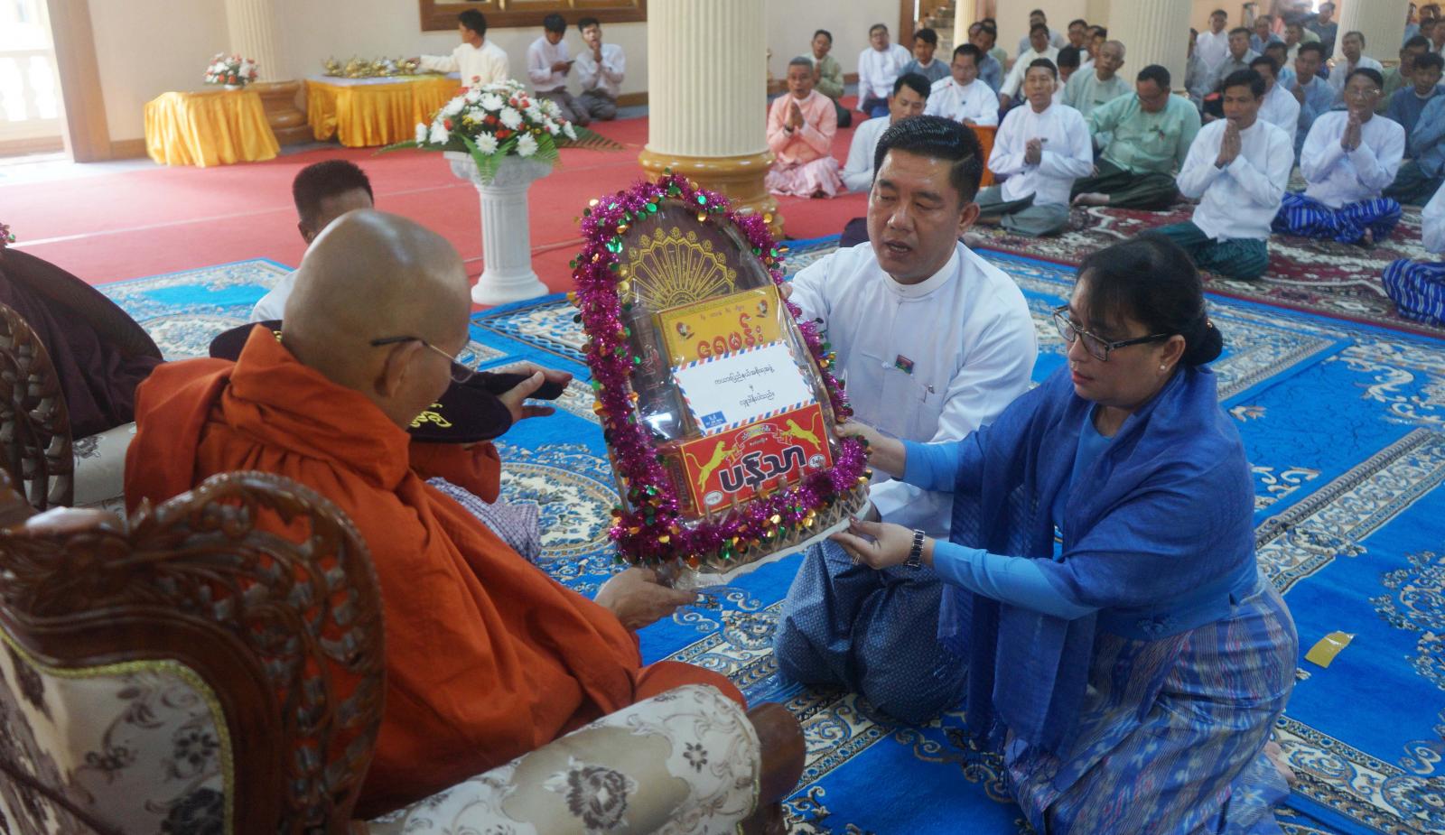 ဆက်လက်၍ ဆရာတော်သံဃာတော်များထံမှ ပရိတ်တရားတော်များ နာယူကြည်ညိုကြပြီး ပြည်နယ်ဝန်ကြီးချုပ်က သာသနာရေးဆိုင်ရာများ လျှောက်ထားခဲ့သည်။