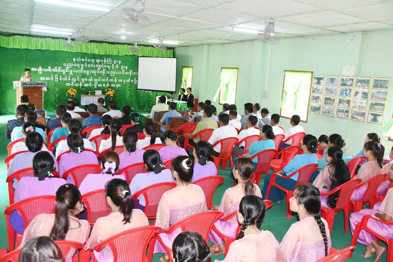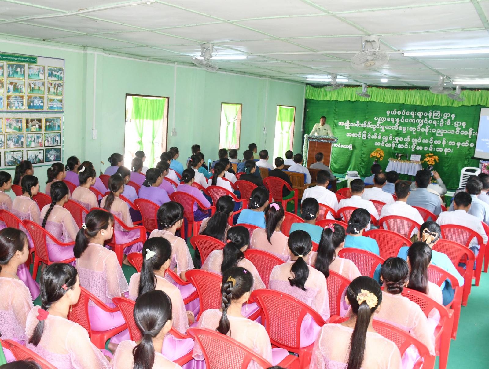 အခမ်းအနားတွင် ခရိုင်စီမံအုပ်ချုပ်ရေးအဖွဲ့ ဥက္ကဋ္ဌ ဦးနေဦး ကအမှာစကားပြောကြားရာတွင် နယ်စပ်ဒေသ ဖွံ့ဖြိုးတိုးတက်ရေး အတွက်အမျိုးသမီးအိမ်တွင်းမှုသက်မွေးပညာ သင်တန်းကျောင်းဖွင့်လှစ်ပေးထားခြင်းအားဖြင့် နယ်စပ်ဒေသ တိုင်းရင်းသူများအနေဖြင့် ကိုယ်ပိုင်စီးပွားရေးများ ဆောင်ရွက်ကာ မိမိဘဝ၊ မိမိဒေသဖွံ့ ဖြိုးတိုးတက်ရေးကို လက်တွေ့ကျကျဆောင်နိုင်မှာဖြစ်ကြောင်း၊ ကျေးလက်နေ ပြည်သူများ၏ အလုပ်အကိုင်အခွင့်အလမ်းများဖန်တီးပေးနိုင်ရေး၊ မိသားစုဝင်ငွေကိုတစ်ဘက်တစ်လမ်းမှ သမာအာဇီဝကျစွာ ရှာဖွေနိုင်ကြောင်း ၊ တစ်ဦးချင်းဝင်ငွေ တိုးပွားလာခြင်းဖြင့် ဆင်းရဲ နွမ်းပါးမှု လျော့ချစေနိုင်ရေး၊ လုပ်ငန်းစဉ်များအတွက် အထောက်အကူပြုနိုင်စေနိုင်ရန် စသည့် ရည်ရွယ်ချက်များဖြင့် ဖွင့်လှစ်ပေးခဲ့ခြင်းဖြစ်ကြောင်း ရှင်းလင်းပြောကြားခဲ့သည်။ ထို့နောက် အမျိုးသမီးအိမ်တွင်းမှု သက်မွေးပညာသင်တန်းကျောင်းကျောင်းအုပ်ဆရာမကြီး ဒေါ်နီလာကြည်က သင်တန်းဖွင့်လှစ်ရခြင်းနှင့်သင်တန်းကျောင်းဆိုင်ရာများအား ရှင်းလင်းတင်ပြခဲ့သည်။