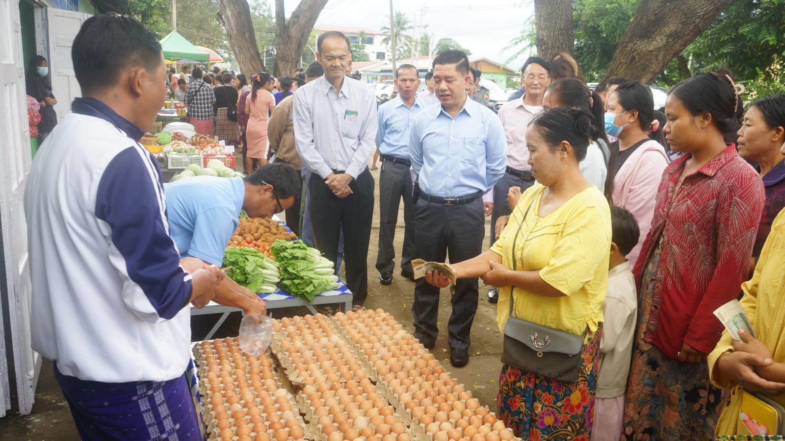 ယင်းသို့လှည့်လည်ကြည့်ရှုရာတွင် ပြည်နယ်ဝန်ကြီးချုပ်က အခွန်လွတ်ဈေး၌ ရောင်းချလျက်ရှိသည့် ဆန်နှင့်ဆီများကို ပြင်ပဈေးနှုန်းနှင့် နေ့စဉ်ကာလပေါက်ဈေးထက် သက်သာသောနှုန်းထားဖြင့်ရောင်းချပေးစေလိုကြောင်း၊ သက်ဆိုင်ရာဌာနများက အခြေခံစားသောက်ကုန်များကို ဝယ်လိုအားနှင့်အညီ ထုတ်လုပ်ရောင်းချပေးစေလိုကြောင်း၊ ဒေသတွင်းထွက်ရှိသည့်သီးနှံများကို ဦးစားပေးရောင်းချကြရန်လိုကြောင်း၊ ပြည်နယ်အစိုးရအဖွဲ့အနေဖြင့် အခွန်လွတ်ဈေးအတွက်လိုအပ်သည်များကို ပံ့ပိုးကူညီးဆောင်ရွက်ပေးသွားမည်ဖြစ်ပြီး သက်ဆိုင်ရာဌာနများကလည်း ပူးပေါင်းဆောင်ရွက်သွားကြရန် တာဝန်ရှိသူများအား မှာကြားခဲ့သည်။