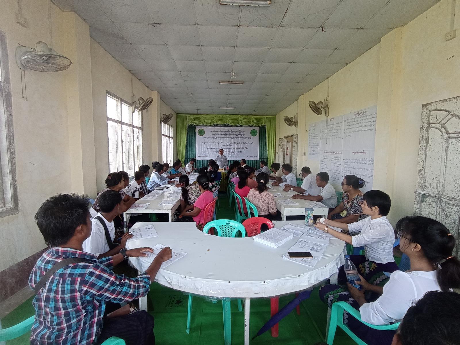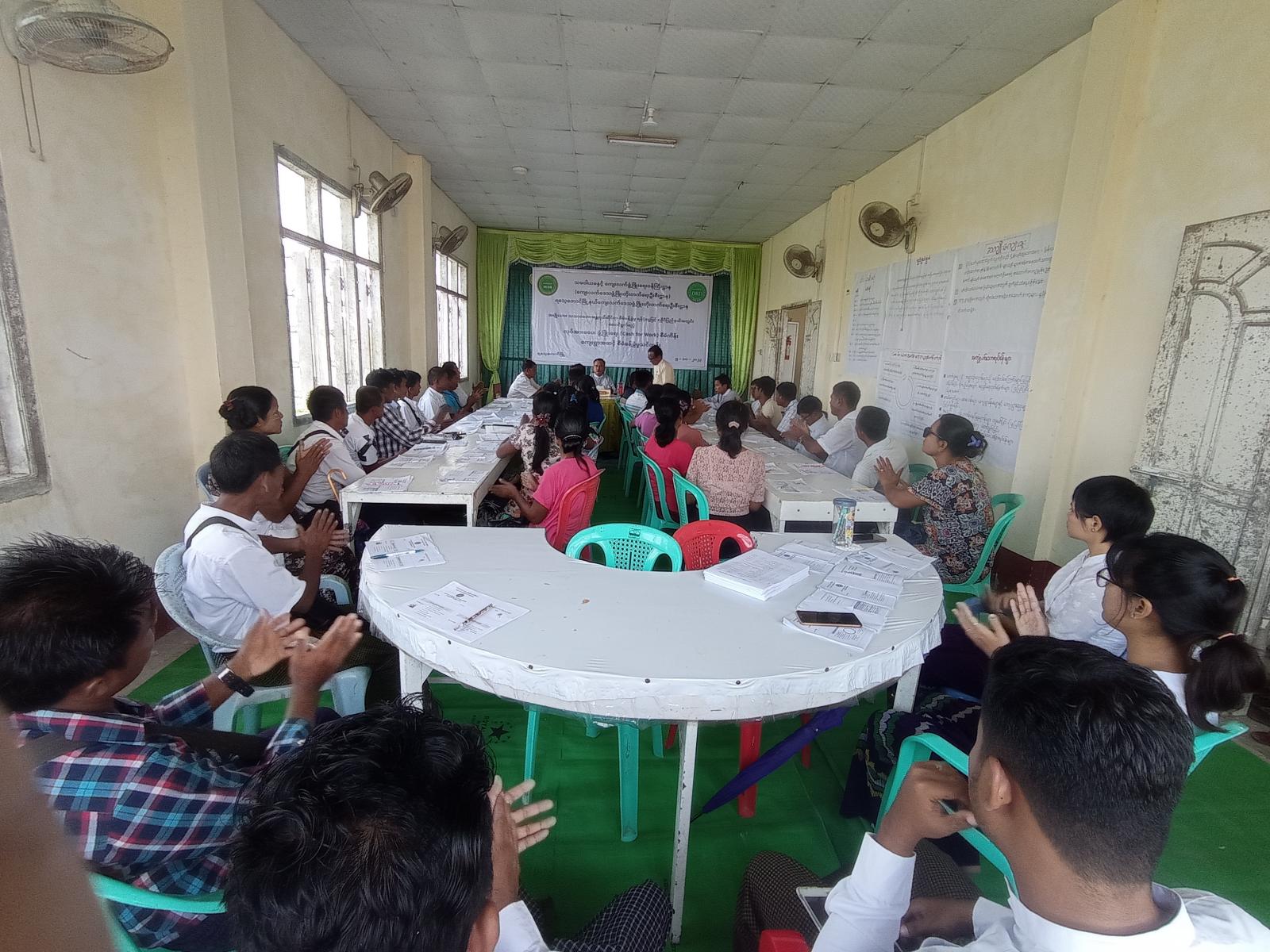 ရခိုင်ပြည်နယ် ရသေ့တောင်မြို့နယ်တွင် သမဝါယမနှင့်ကျေးလက်ဖွံ့ဖြိုးရေးဝန်ကြီးဌာန၊ ကျေးလက်ဒေသဖွံ့ဖြိုးတိုးတက်ရေးဦးစီးဌာန၊ မြို့နယ်ကျေးလက်ဒေသဖွံ့ဖြိုးတိုးတက်ရေးဦးစီးဌာနမှ အမျိုးသားသဘာဝဘေးအန္တရာယ်ဆိုင်ရာ စီမံခန့်ခွဲ့မှုရန်ပုံငွေဖြင့်ရခိုင်ပြည်နယ် အတွင်းဆောင်ရွက်မည့် လုပ်အားခပေးဖွံ့ဖြိုးရေး (Cash for Work)စီမံကိန်းကျေးရွာအဆင့် စီမံခန့်ခွဲမှုသင်တန်းကို ယနေ့နံနက်(၁၀)နာရီက မြို့နယ်ကျေးလက်ဒေသဖွံ့ဖြိုးတိုးတက်ရေးဦးစီးဌာန၊ အစည်းအဝေးခန်းမ၌ ပြုလုပ်ခဲ့သည်။