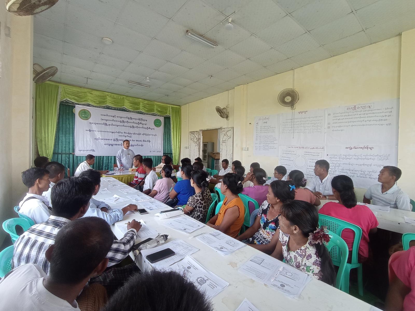 ထို့နောက်လုပ်အားခပေးဖွံ့ဖြိုးရေး (Cash for Work)စီမံကိန်ဆောင်ရွက်မည့် ကျေရွာများဖြစ်သည့် ဆင်ပိုက်ကျေးရွာ၊ တန်းအေးကျေးရွာ၊ ကံပြင်(အလယ်ရွာ)ကျေးရွာ၊ ပြင်ဝန်းကျေးရွာနှင့်ရန်အောင်ပြင်ကျေးရွာများမှ လုပ်ငန်းကော်မတီဝင်များအား သင်ကြားပေးခဲ့ပြီး မနက်ဖြန်တွင် နှမ်းခင်းကျေးရွာ၊ ဇီကိုင်းကျေးရွာ၊ဆားပြင်ကြီးကျေးရွာနှင့် ကျွန်းကြီးကျေးရွာရှိ လုပ်ငန်း ကော်မတီဝင်များအားသင်ကြားပေးသွားမည်ဖြစ်ကြောင်း သိရသည်။