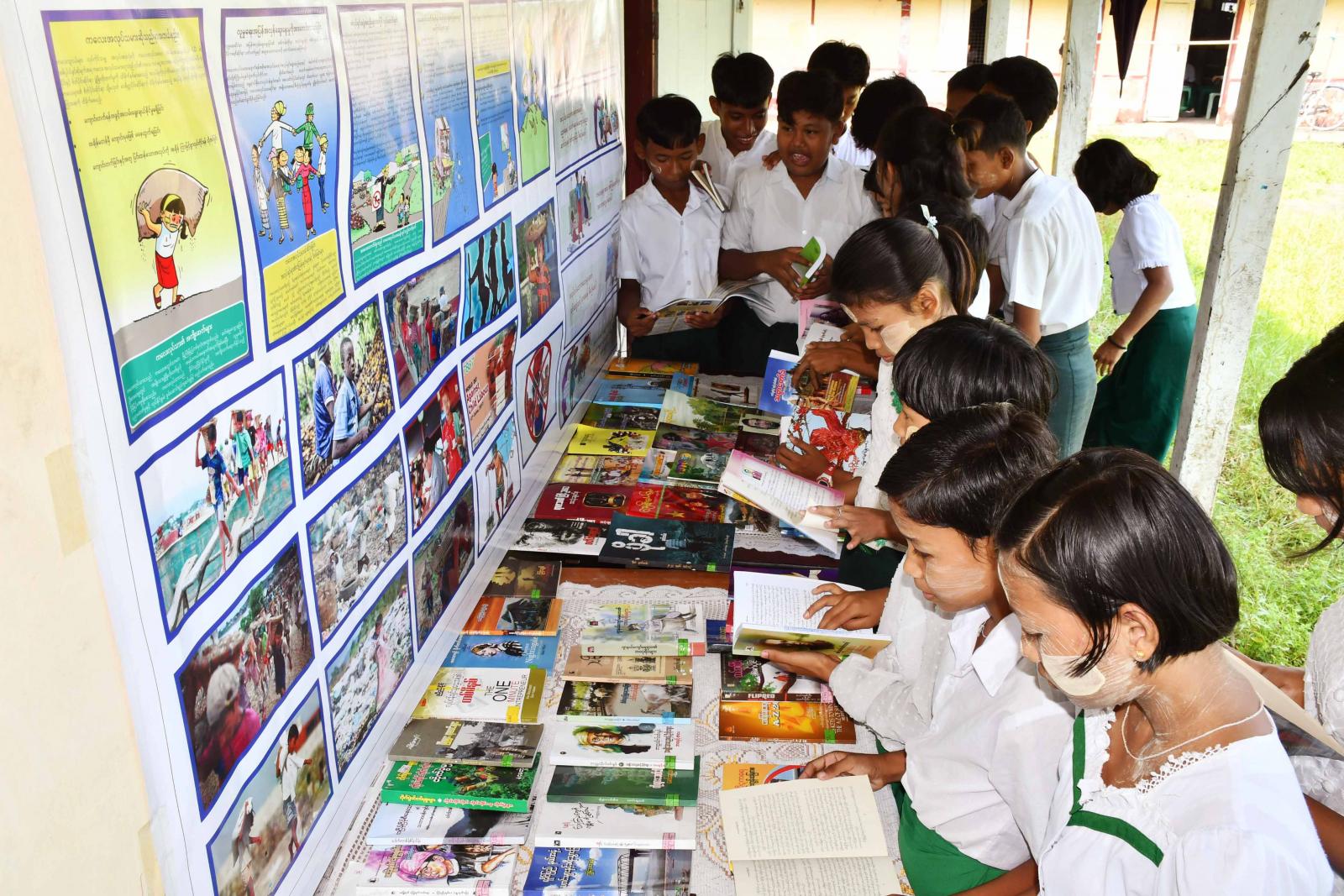 ဆက်လက်၍ ကျောင်းသား၊ ကျောင်းသူများသည် ပြန်ကြားရေးနှင့်ပြည်သူ့ဆက်ဆံရေးဦးစီးဌာနမှ ခင်းကျင်းပြသထားသည့် နိုင်ငံတော်စီမံအုပ်ချုပ်ရေးကောင်စီ၏ ရှေ့လုပ်ငန်းစဉ်(၅)ရပ်နှင့် ဦးတည်ချက်(၉)ရပ် ပါရှိသော နံရံကပ်စာစောင်များ၊ ကလေးအလုပ်သမားပပျောက်ရေး အသိပညာပေး နံရံကပ်ဓာတ်ပုံများနှင့် စာအုပ်စာစောင်များတို့အား စိတ်ပါဝင်စားစွာဖြင့် လေ့လာကြည့်ရှုခဲ့ကြကြောင်း သိရသည်။