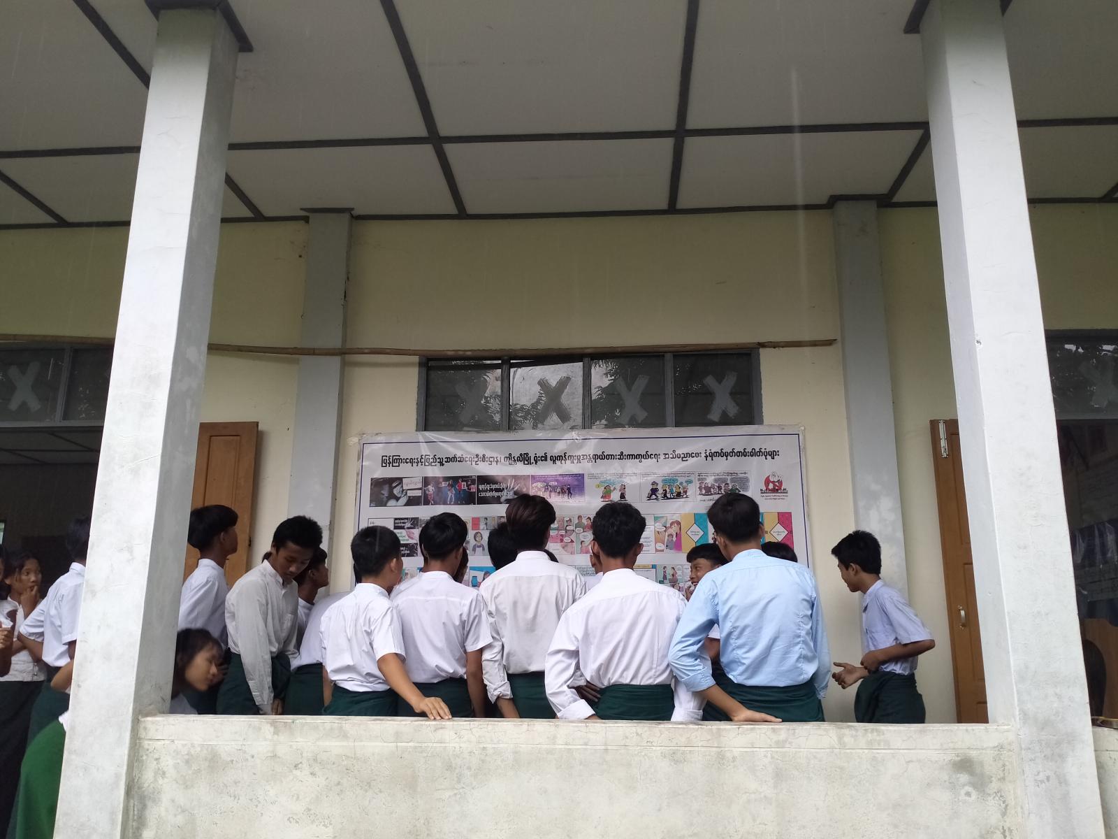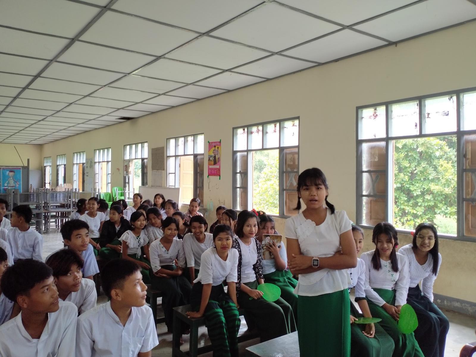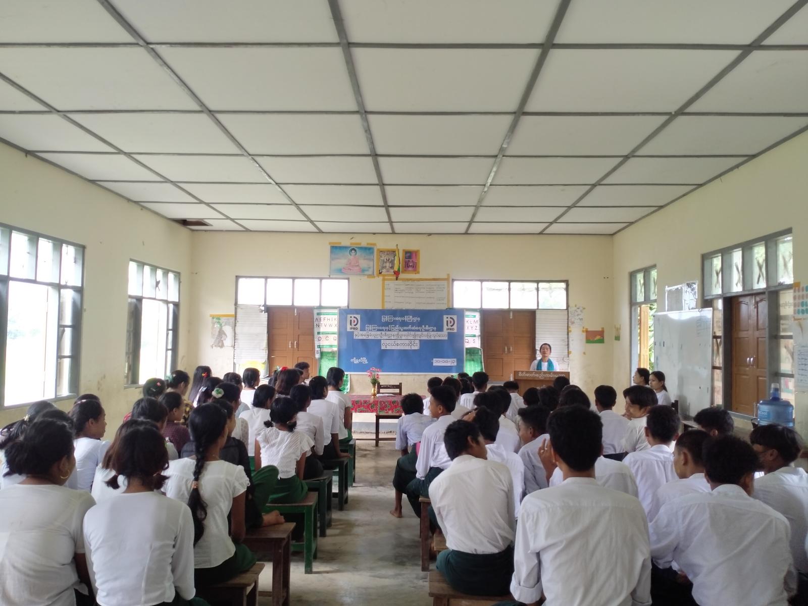 ဆက်လက်၍ လူငယ်စကားဝိုင်းဆွေးနွေးပွဲကိုကျင်းပရာ ပြန်ကြားရေးနှင့်ပြည်သူ့ဆက်ဆံရေးဦးစီးဌာနမှ မြို့ဦးစီးမှူး ဒေါ်သန်သန်းလေးက ဦးဆောင်သူအဖြစ်ပါဝင်ဆောင်ရွက်ပြီး Grade-10 မှ မောင်အောင်မြတ်စိုးက “လူငယ်နှင့်အသိပညာ” ခေါင်းစဉ်ဖြင့်လည်းကောင်း၊ Grade-9မှ မောင်တိုးဝေဖြိုးက “လူငယ်နှင့်စည်းကမ်း” ခေါင်းစဉ်ဖြင့်လည်းကောင်း၊ Grade-9 မှ မယွန်းနဒီခင်က “လူငယ်နှင့်တန်ဖိုး” ခေါင်းစဉ်ဖြင့်လည်းကောင်း၊ Grade-9 မှ မကျော့ကျော့ခိုင်က “လူငယ်နှင့်မူးယစ် ဆေးဝါး”ခေါင်းစဉ်ဖြင့်လည်းကောင်း၊ Grade-9မှ မအိရတီထွန်းက “လူငယ်နှင့်ကိုယ်ကျင့်တရား” ခေါင်းစဉ်ဖြင့်လည်းကောင်း အသီးသီးဆွေးနွေးခဲ့ကြပြီး တက်ရောက်လာကြသည့် ကျောင်းသား/သူများက သိရှိလိုသည်များကိုမေမြန်းခဲ့ရာ ဦးဆောင်ဆွေးနွေးသူများက ပြန်လည်ရှင်းလင်း ဆွေးနွေးခဲ့ကြသည်။ ထို့နောက် အခမ်းအနားသို့တက်ရောက်လာကြသည့် ကျောင်းသား/သူများက ပြန်ကြားရေးနှင့်ပြည်သူ့ဆက်ဆံရေးဦးစီးဌာနက ပြသထားသည့် အသိပညာပေးနံရံကပ်စာစောင်များနှင့် ခင်းကျင်းပြသထားသည့် စာအုပ်စာစောင်များကို စိတ်ပါဝင်စားစွာဖြင့် လေ့လာဖတ်ရှုခဲ့ကြောင်း သိရသည်။
