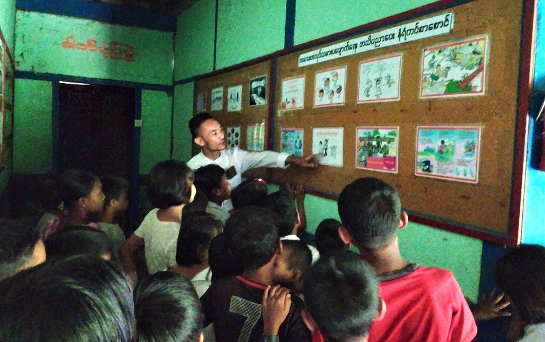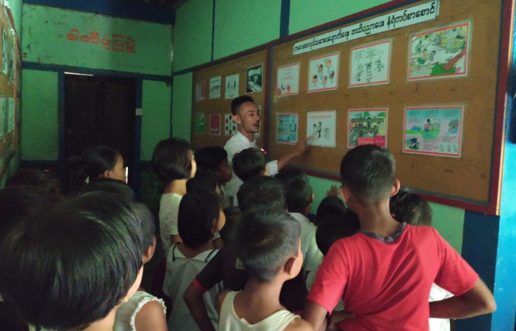ထို့နောက် ပြန်ကြားရေးနှင့်ပြည်သူ့ဆက်ဆံရေးဦးစီးဌာန ဦးစီးအရာရှိ ဦးဖြိုးမောင်မောင်က နံရံကပ်စာစောင်များကို ကြည့်ရှုလာသူ ကျောင်းသား/ ကျောင်းသူများအား ကလေးအလုပ်သမားတွင် ဥပဒေက ခွင့်ပြုထားသည့် အသက်အရွယ်အောက် ကလေးငယ်များကို ခေါ်ဆိုခြင်းဖြစ်ကြောင်း၊ အလုပ်လုပ်ရန်ဥပဒေကခွင့်ပြုထားသော်လည်း ကလေးအလုပ်သမားများသည် အလုပ်ခွင်၌ အချိန်ပြည့်နီးပါး အလုပ်လုပ်ကြရသဖြင့် စိတ်ပိုင်း၊ ရုပ်ပိုင်းဆိုင်ရာနာကျင်မှုများ မလွဲမသွေ ခံစားကြရမည်ဖြစ်ကြောင်း၊ ကလေးအလုပ်သမားများနှင့်ပတ်သက်၍ ကာကွယ်ပေးရမည့် ဥပဒေများကြောင်း၊ ကလေးအလုပ်သမားခိုင်းစေခြင်းဆိုင်ရာ ပြဌာန်းချက်များကို အတည်ပြု လက်မှတ်ရေးထိုးခဲ့ကြောင်းစသည့် ကလေးအလုပ်သမားပပျောက်ရေးဆိုင်ရာ အကြောင်းအရာများကို ရှင်းလင်းပြောကြားခဲ့ပြီး ကျောင်းသား/ကျောင်းသူများက ကလေးအလုပ်သမား ပပျောက်ရေး ဆိုင်ရာအသိပညာပေး နံရံကပ်စာစောင်များကို စိတ်ဝင်စားစွာကြည့်ရှုခဲ့ကြောင်း သိရသည်။