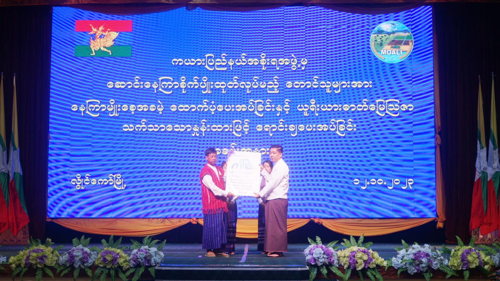 ထို့နောက် ပြည်နယ်ဝန်ကြီးချုပ်နှင့် တာဝန်ရှိသူများက လွိုင်ကော်မြို့နယ်ရှိ နိုးကိုးကျေးရွာအုပ်စု၊ မထောခူကျေးရွာအုပ်စု၊ နွားလဝိုးကျေးရွာအုပ်စု၊ ချိကယ်ကျေးရွာအုပ်စု၊ ဒီးမော့ဆိုမြို့နယ်ရှိ ကျွန်းတောကျေးရွာအုပ်စု၊ ဘုရားဖြူကျေးရွာအုပ်စု၊ အိုကေကျေးရွာအုပ်စု၊ ဒေါဘူးကူးကျေးရွာအုပ်စု၊ ဖရူဆိုမြို့နယ်ရှိ မြို့မကျေးရွာအုပ်စု၊ ဟိုယာကျေးရွာအုပ်စု၊ ညောင်ဇင်ရပ်ကွက်နှင့် ထီးတရဲရပ်ကွက်တို့ရှိ တောင်သူများအား နေကြာစိုက်ဧက(၂၀၀၀)အတွက် နေကြာမျိုးစေ့များအခမဲ့ ထောက်ပံ့ပေးအပ်ခဲ့ကြသည်။