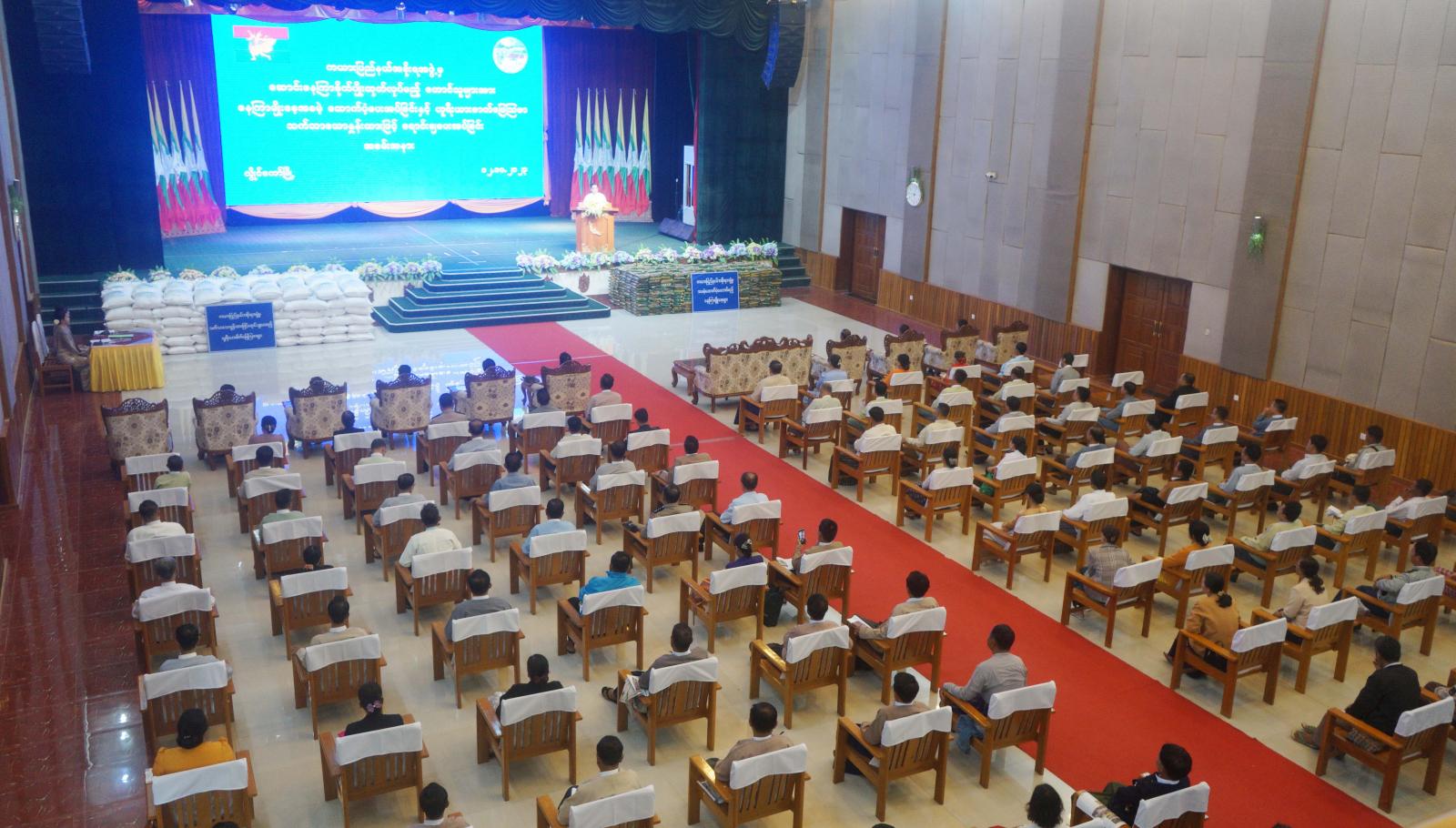 ကယားပြည်နယ်အစိုးရအဖွဲ့မှဦးစီး၍ ပြည်နယ်အတွင်းရှိ ဆောင်းနေကြာစိုက်ပျိုး တောင်သူများအား နေကြာမျိုးစေ့အခမဲ့ ထောက်ပံ့ပေးအပ်ခြင်းနှင့် ယူရီးယားဓါတ်မြေဩဇာများကို သက်သာသောနှုန်းထားဖြင့် ရောင်းချပေးအပ်ခြင်း အခမ်းအနားကို ယမန်နေ့နံနက်ပိုင်း က လွိုင်ကော်မြို့၊ ပြည်နယ်ခန်းမ၌ ကျင်းပပြုလုပ်ရာ ကယားပြည်နယ်အစိုးရအဖွဲ့၊ ပြည်နယ်ဝန်ကြီးချုပ် ဦးဇော်မျိုးတင်၊ ပြည်နယ်အစိုးရအဖွဲ့ဝင် ဝန်ကြီးများ၊ ဒေသကွပ်ကဲရေးမှူး၊ ဌာနဆိုင်ရာအသီးသီးမှ တာဝန်ရှိသူများနှင့် လွိုင်ကော်၊ ဒီးမော့ဆို၊ ဖရူဆိုမြို့နယ်များရှိ နေကြာစိုက်တောင်သူများ တက်ရောက်ခဲ့ကြသည်။