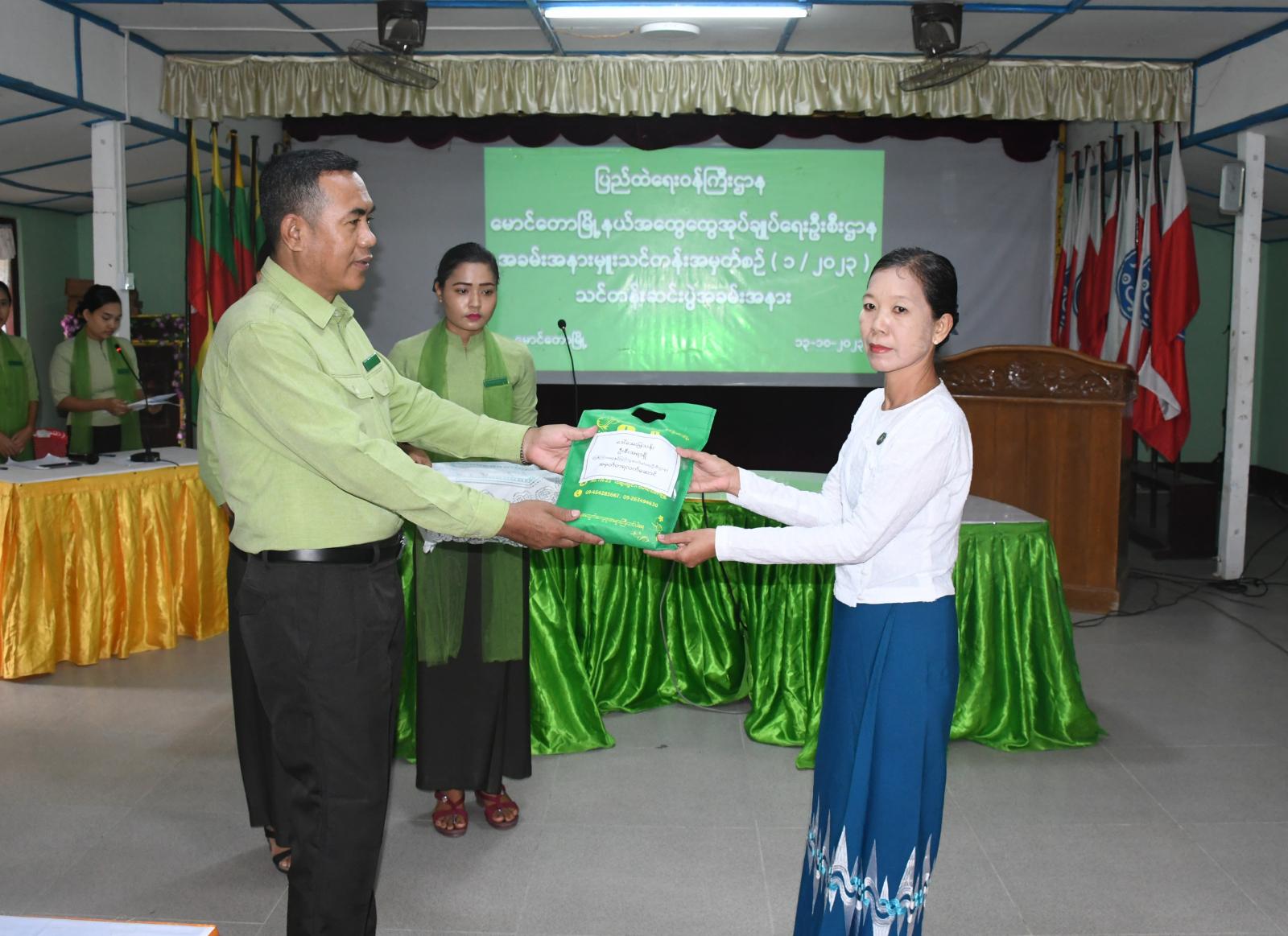 ဦးစွာ မြို့နယ်စီမံအုပ်ချုပ်ရေးအဖွဲ့ဉက္ကဋ္ဌ၊ မြို့နယ်အုပ်ချုပ်ရေးမှူး ဦးကံထွန်းအောင်က မြို့နယ် အထွေထွေအုပ်ချုပ်ရေးဦးစီဌာနမှ ကြီးမှူးဖွင့်လှစ်ခဲ့သော အခမ်းအနားမှူးသင်တန်းဖွင့်လှစ်ပေးခဲ့ရခြင်းများနှင့်ပတ်သတ်၍ အမျိုးသမီးဝန်ထမ်းများအနေဖြင့် ဌာနမှကျင်းပပြုလုပ်သည့် အခမ်းအနားများ၊ အစည်းအဝေးများတွင် အခမ်းအနားမှူးများ ဆောင်ရွက်ရာတွင် အမှားအယွင်းမရှိ စနစ်တကျ အစီအစဉ်အတိုင်း ဆောင်ရွက်တတ်စေရန်နှင့် စကားအသုံးအနှုန်း မှန်ကန်စွာ ပြောဆိုဆောင်ရွက်တတ်စေအောင် စသည့် ရည်ရွယ်ချက်များဖြင့် ဖွင့်လှစ်ပေးခဲ့ရခြင်းဖြစ်ကြောင်း ပြောကြားခဲ့ပြီး သင်တန်းသူတစ်ဦးက ကျေးဇူးတင်စကား ပြောကြားခဲ့သည်။ ထို့နောက် မြို့နယ်အထွေထွေအုပ်ချုပ်ရေးဦးစီဌာနမှ ကြီးမှူးဖွင့်လှစ်သော အခမ်းအနားမှူးသင်တန်းတွင် နည်းပြအဖြစ်ဆောင်ရွက်ခဲ့ကြသူများကို အမှတ်တရလက်ဆောင်များ ပေးအပ်ခဲ့သည်။ အဆိုပါ အခမ်းအနားမှူးသင်တန်းအမှတ်စဉ်(၁/၂၀၂၃)ကို မြို့နယ်အထွေထွေအုပ်ချုပ်ရေးဦးစီဌာနရှိ အကြီးတန်းစာရေး၊ အငယ်တန်းစာရေးနှင့် လစာနှုန်းတူ အမှုထမ်း အမျိုးသမီးဝန်ထမ်း ၂၄ ဦး တက်ရောက်သင်ယူခဲ့ကြပြီး သင်တန်းကာလမှ နှစ်ပတ်ကြာပို့ချပေးခဲ့ခြင်းဖြစ်ကြောင်း သိရသည်။